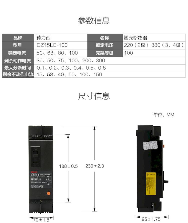 德力西漏電開關(guān)DZ15LE-100/2901 63A 100A塑殼漏電斷路器 黑色動(dòng)力型塑殼漏電開關(guān) |