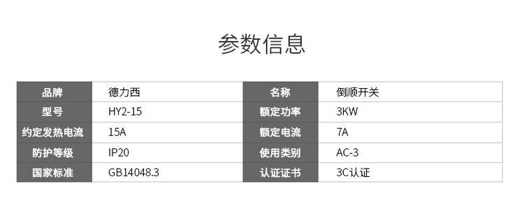 德力西倒順開關(guān) HY2-15/3KW 額定電流7A |