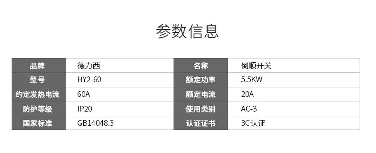 德力西倒順開關 HY2-60/10KW 額定電流20A |