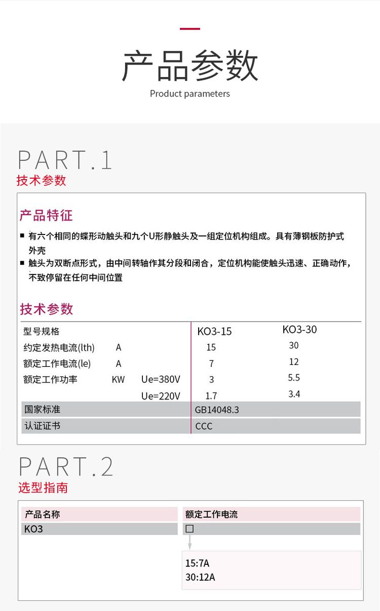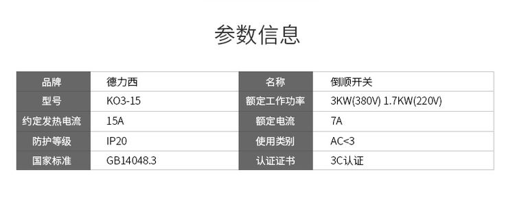德力西倒順開關(guān) KO3-15/3KW 額定電流7A 純紫銅 |
