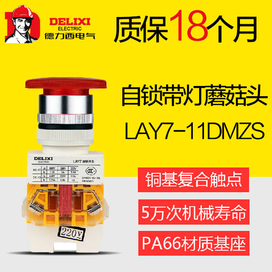 定制 德力西帶燈急停按鈕開關(guān) LAY7-11DMZS 蘑菇頭帶燈帶自鎖急??刂瓢粹o 開孔22MM 訂單產(chǎn)品 |