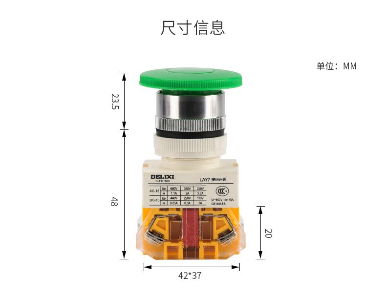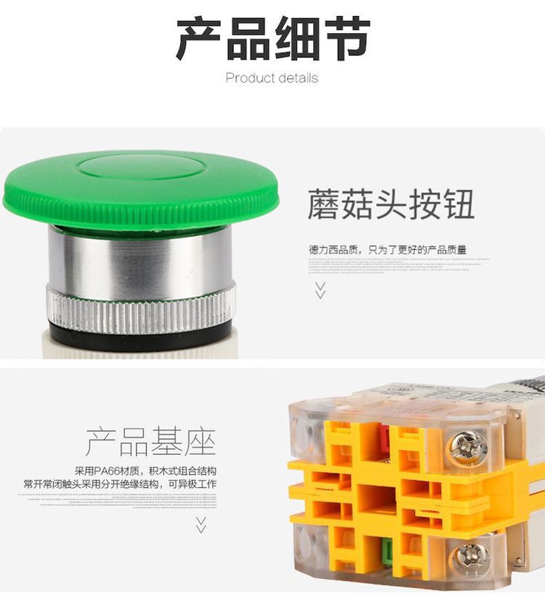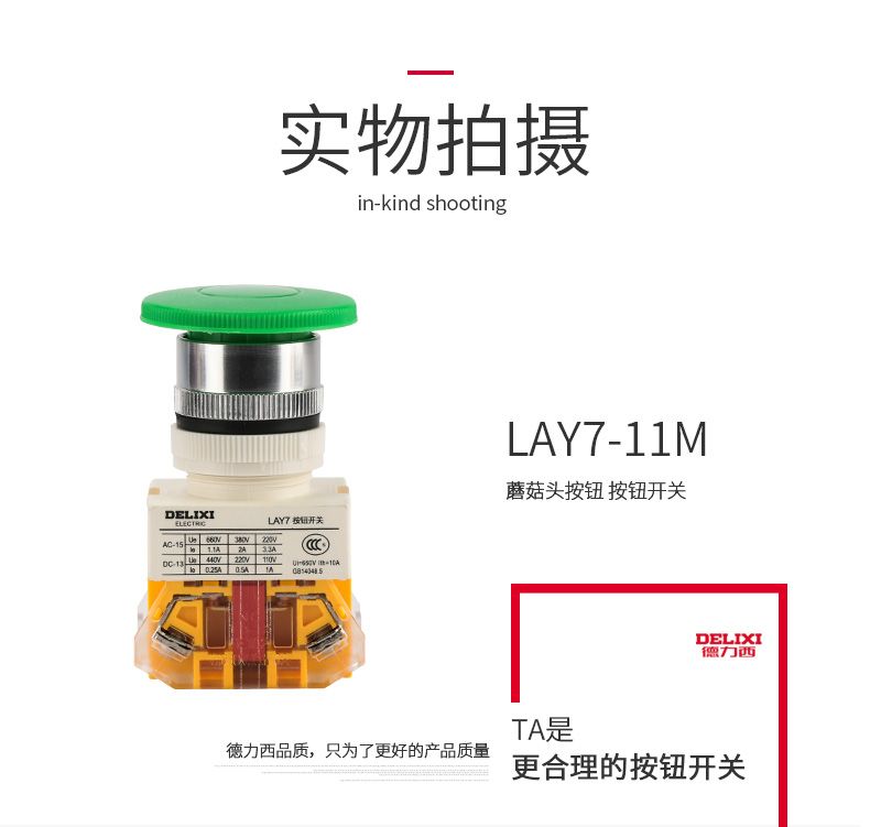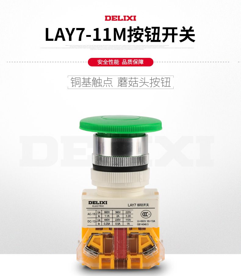 德力西LAY7-11M蘑菇頭按鈕不帶急停 按鈕開(kāi)關(guān)不帶鎖 大頭按鈕 控制按鈕 開(kāi)孔尺寸22MM |