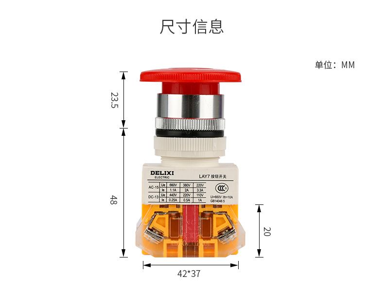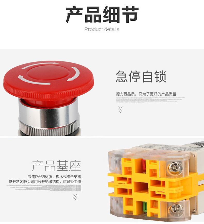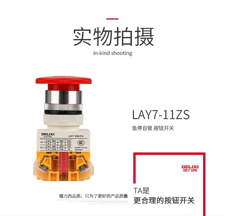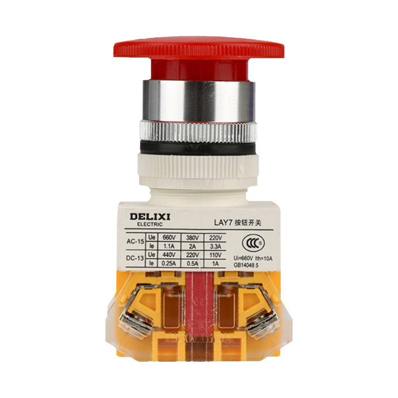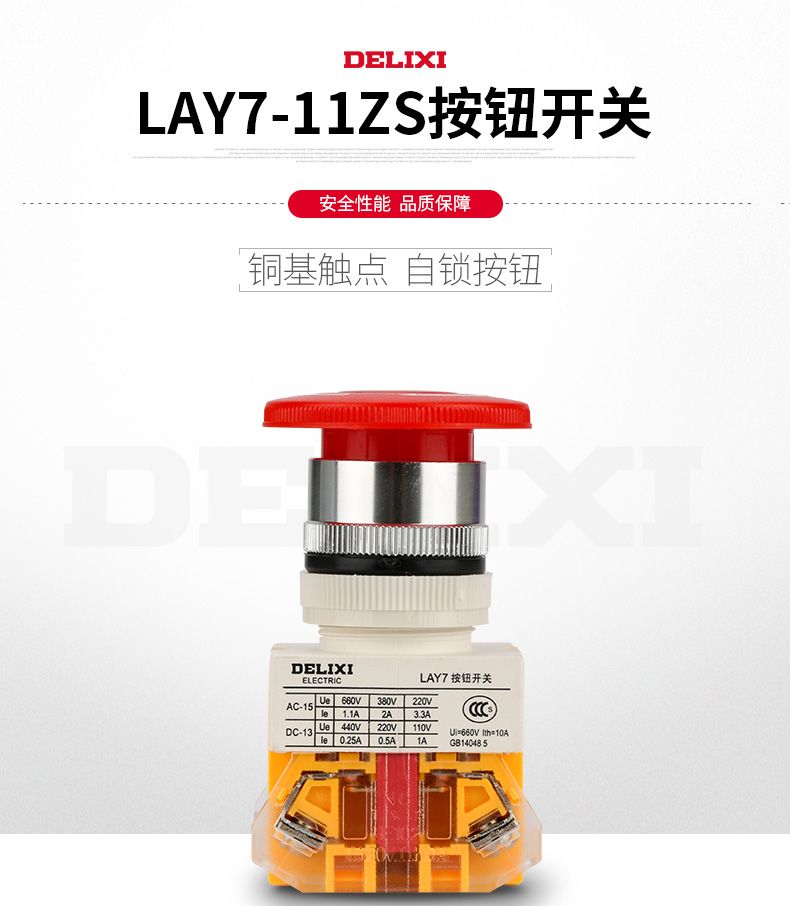 德力西急停按鈕開關(guān) LAY7-11ZS 蘑菇頭帶自鎖急停按鈕 觸點(diǎn)1常開1常閉 開孔尺寸22MM |