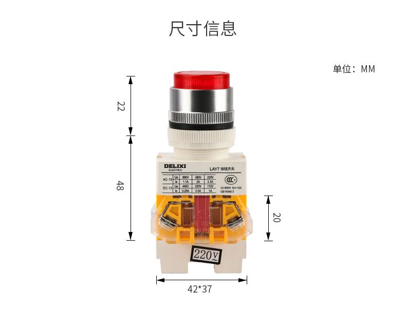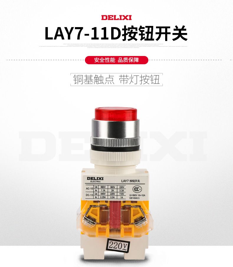 德力西按鈕開關(guān) LAY7-11D 帶燈按鈕 帶燈控制按鈕 按鈕開關(guān) 開孔尺寸22MM |