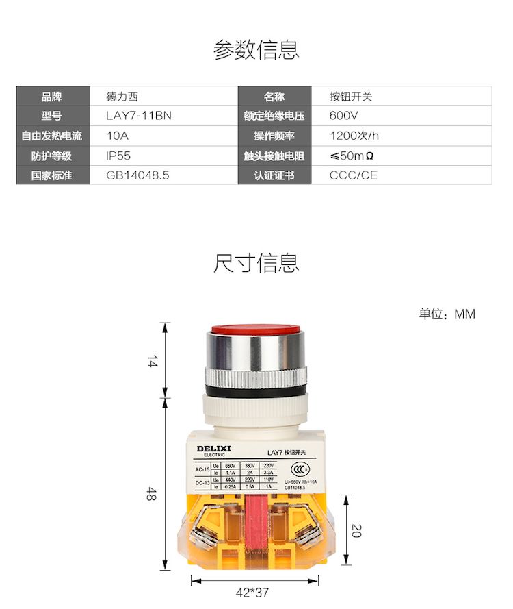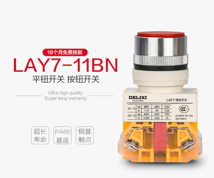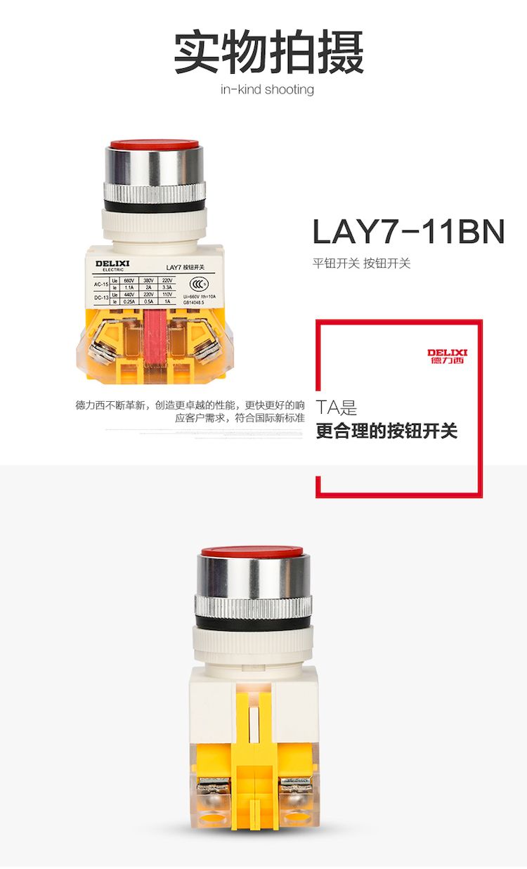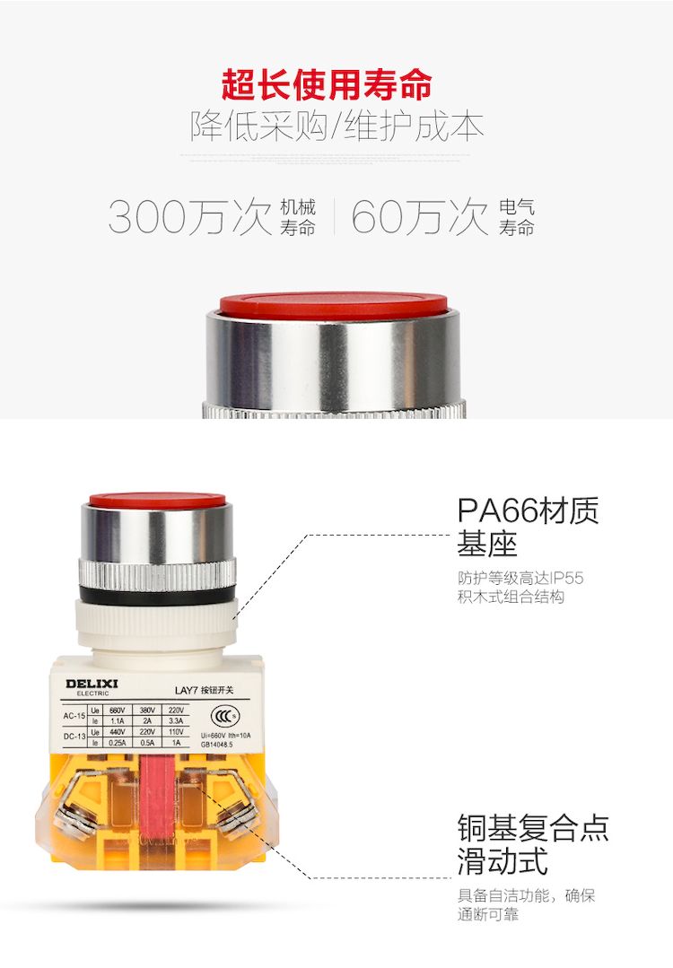 德力西按鈕開關(guān) LAY7-11BN 平頭按鈕 普通控制按鈕 按鈕開關(guān) 開孔尺寸22MM |
