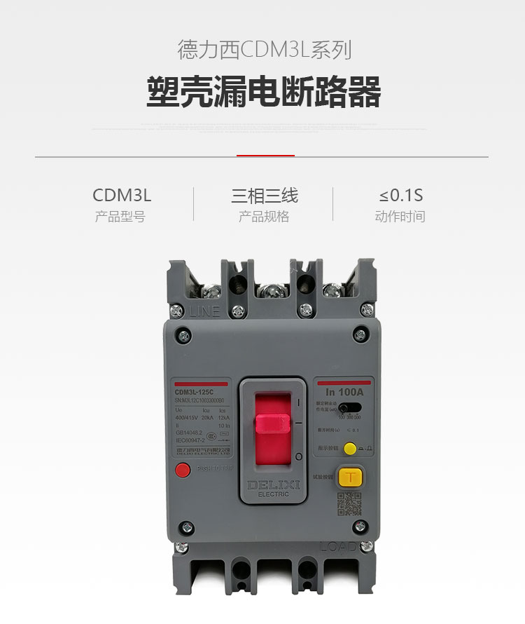 定制  德力西塑殼漏電斷路器CDM3L-125/160/250/400/630/3300三相三線漏電開(kāi)關(guān) 3極不帶零線漏電塑殼斷路器 【定制產(chǎn)品】