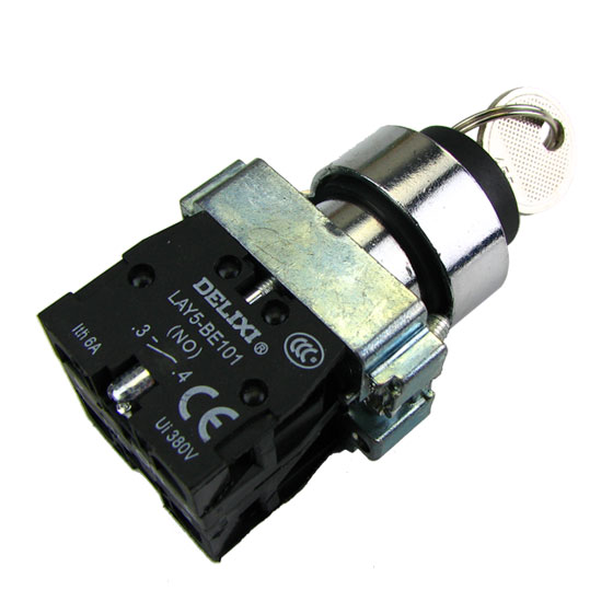 德力西金屬型帶鑰匙旋鈕開關(guān) LAY5s-BG31/BG35 三擋鑰匙旋鈕 觸點(diǎn)一常開一常閉 開孔尺寸22mm |
