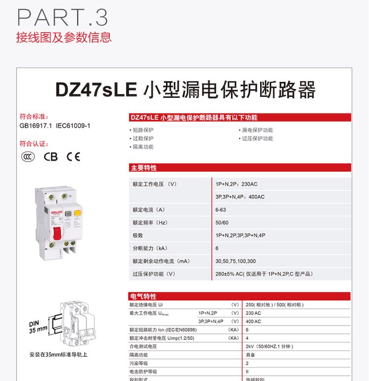 德力西電氣全新DZ47S系列終端小型漏電斷路器配電產(chǎn)品樣本
