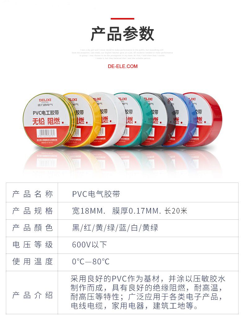 德力西電工膠布 阻燃膠布 絕緣膠布 PVC膠布 電線膠布 厚度0.15mm 寬度17mm 長度20米 顏色隨機(jī)發(fā)放 |