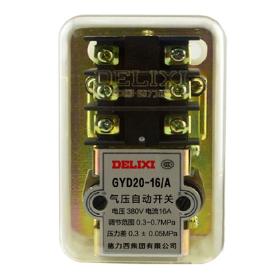 德力西氣壓自動(dòng)開關(guān)GYD20-16/A 壓強(qiáng)調(diào)節(jié)范圍0.3-0.7MPa 最大承受7公斤壓力 |