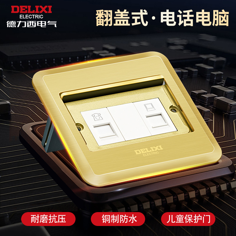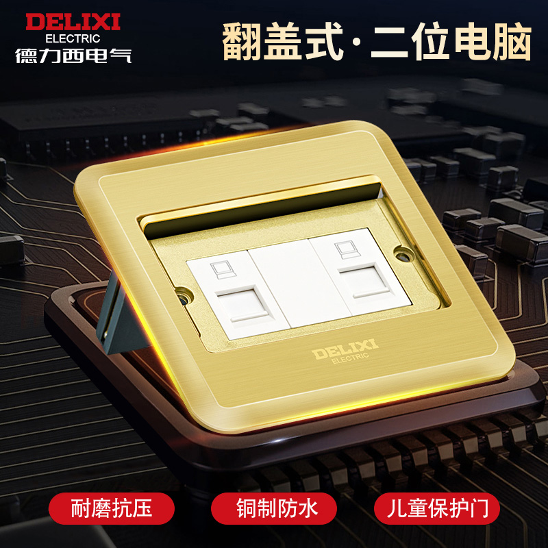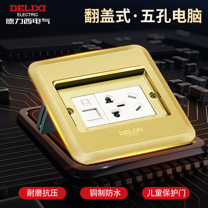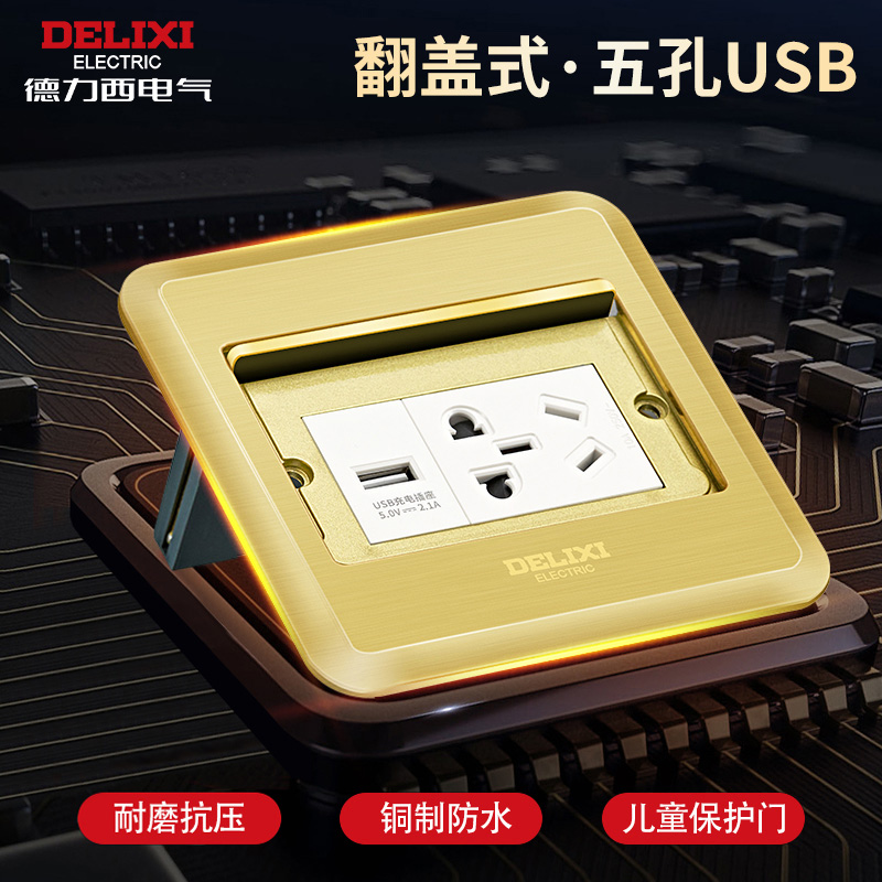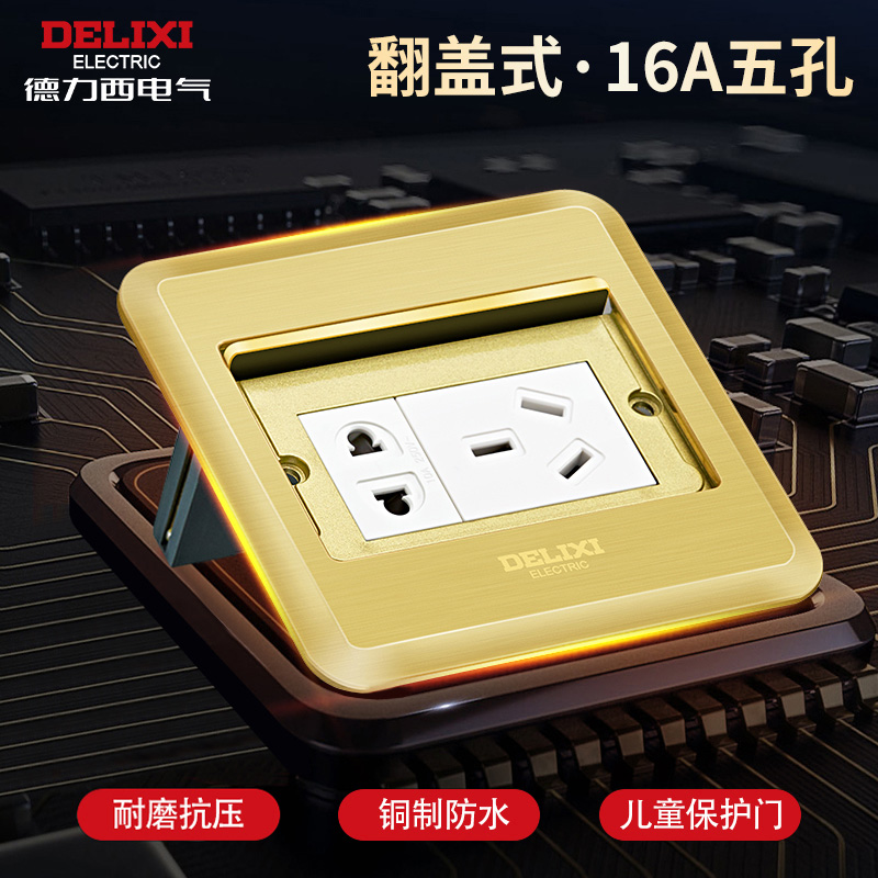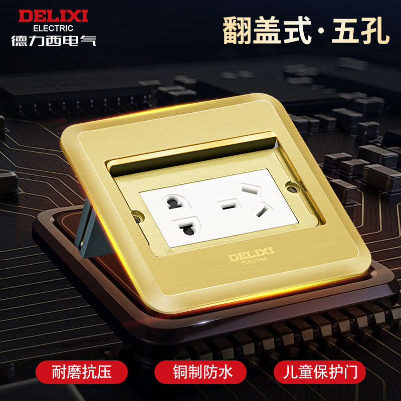 德力西地插翻蓋式 隱形全銅防水地插 五孔翻蓋式地插多功能家用耐用帶安全門(mén)