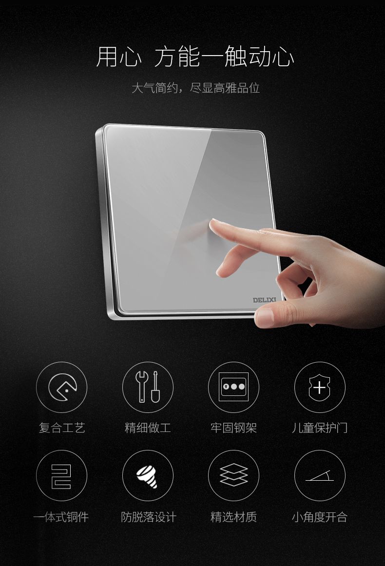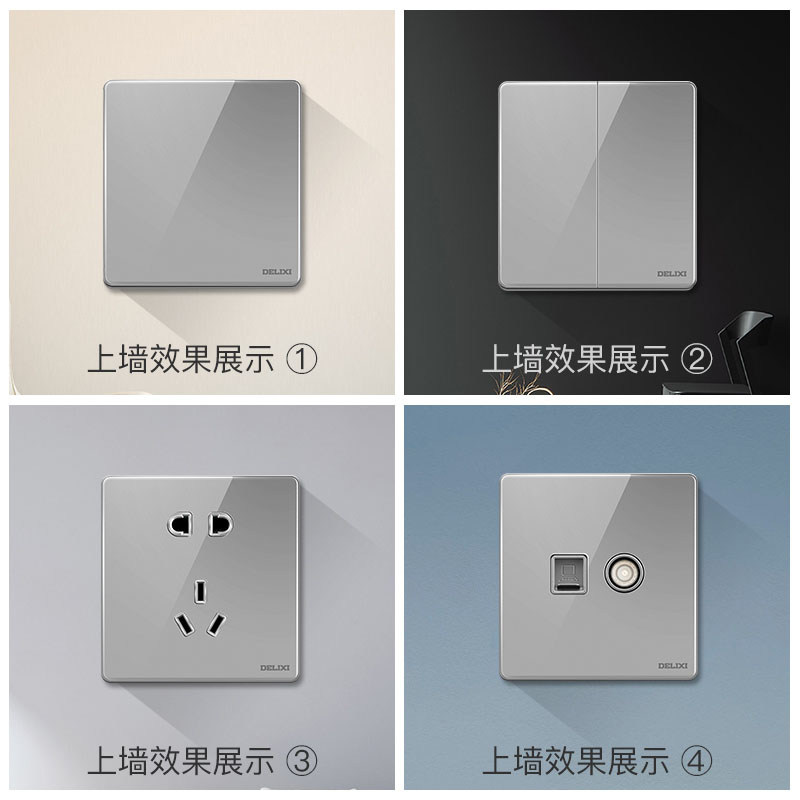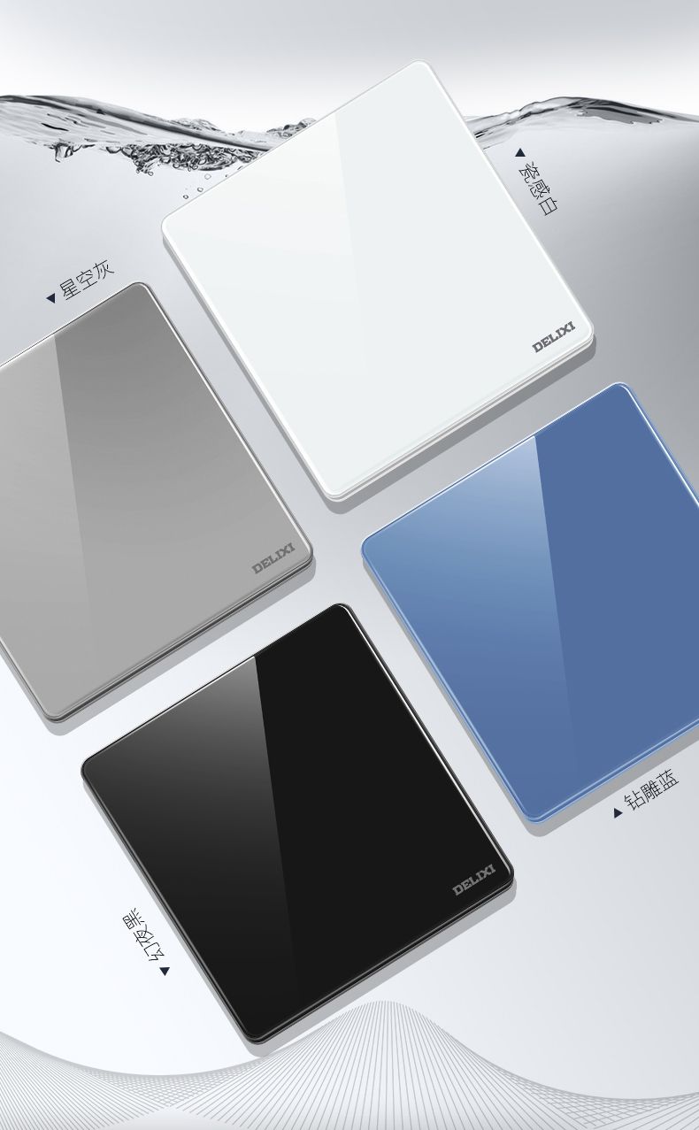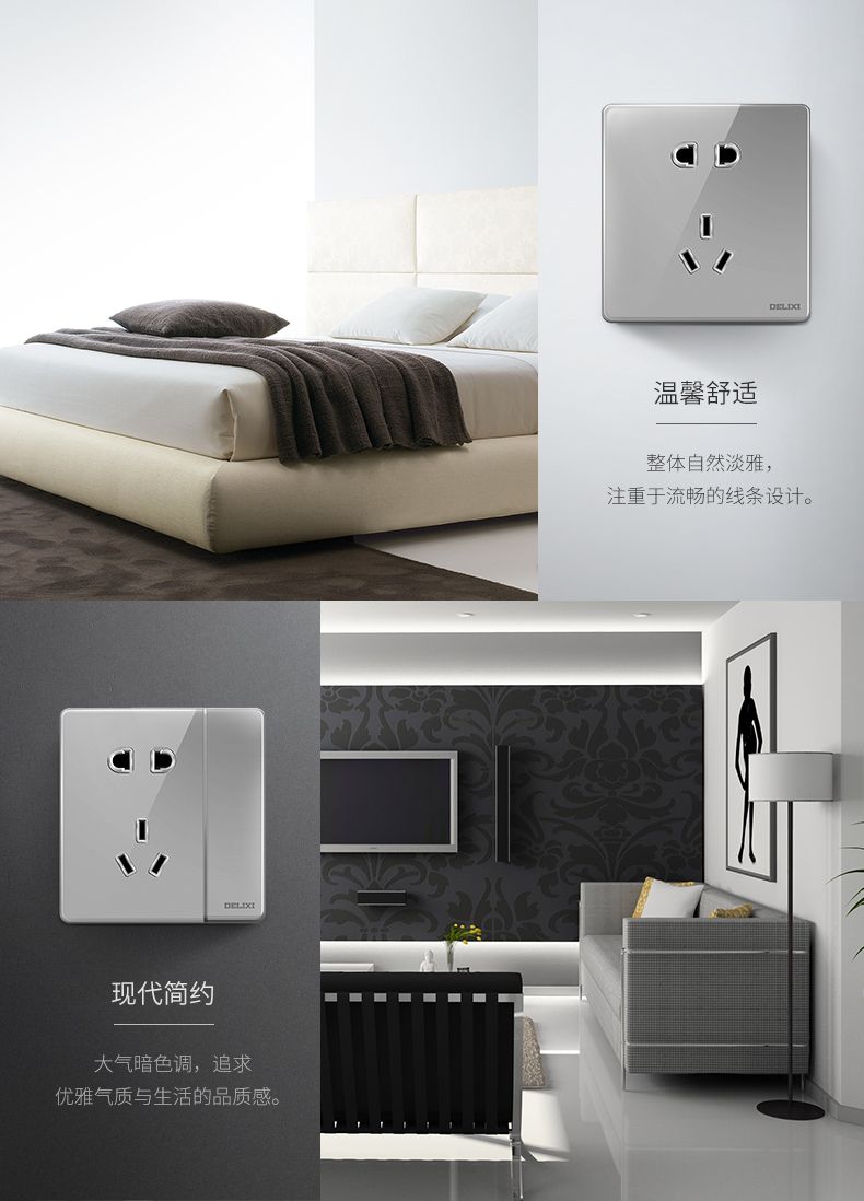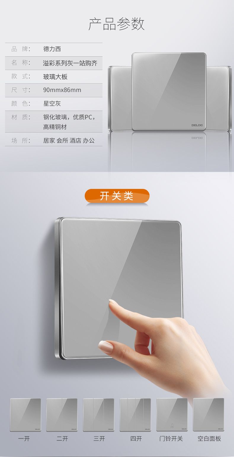 德力西881玻璃星空灰墻壁開(kāi)關(guān)插座 星空灰無(wú)邊框大板玻璃鏡面五孔USB一開(kāi)二開(kāi)三開(kāi)雙控多控開(kāi)關(guān)插座