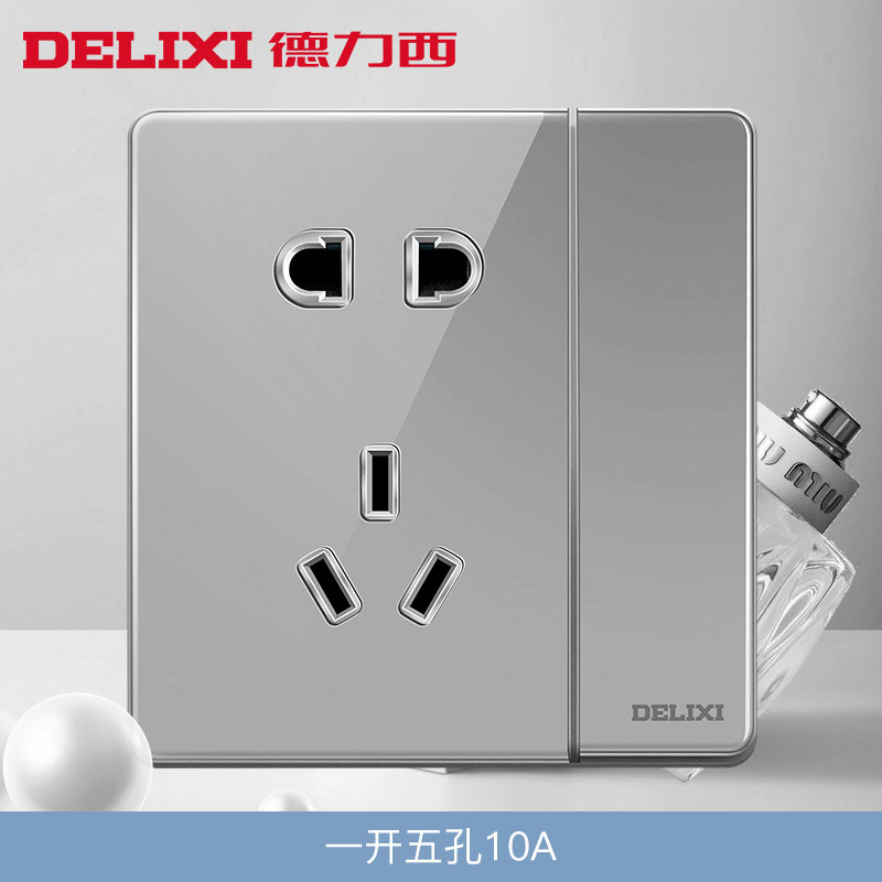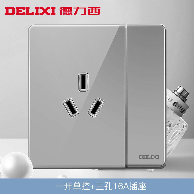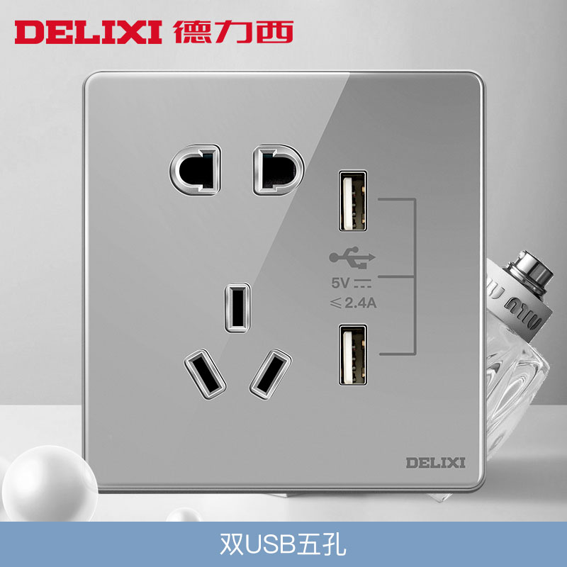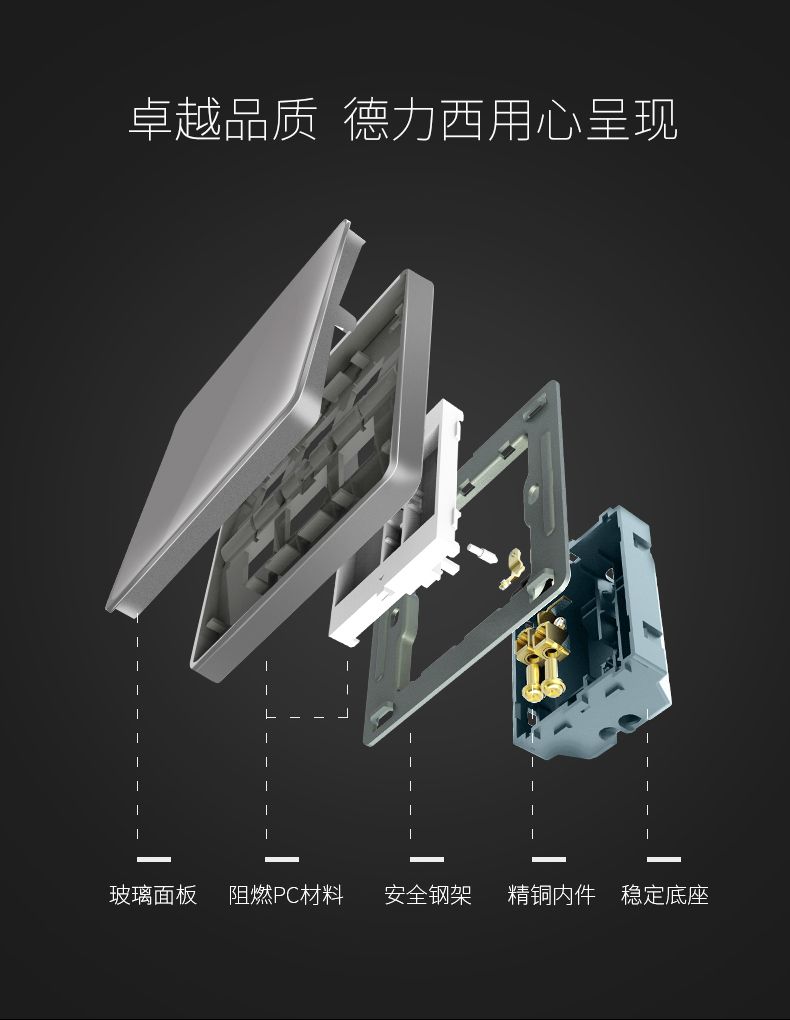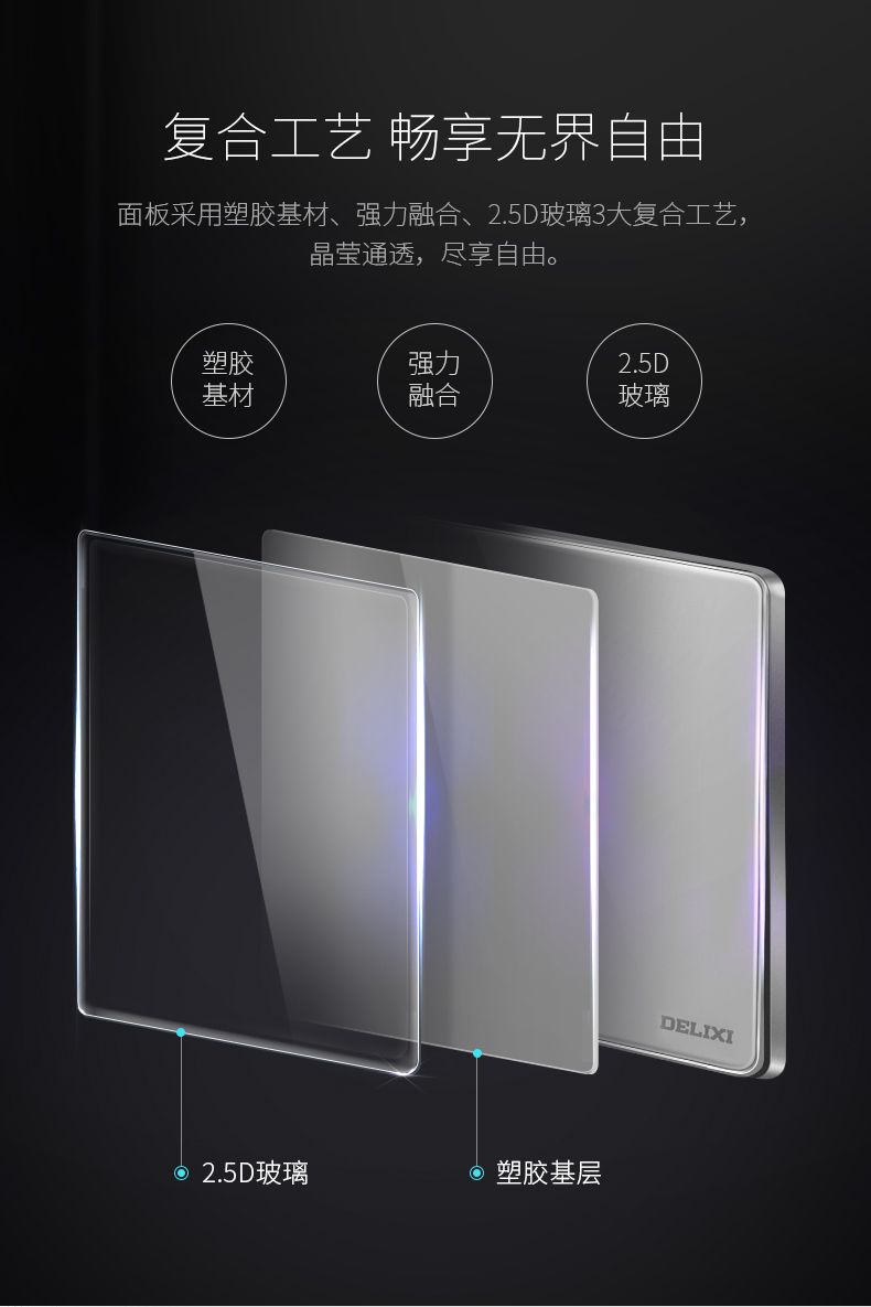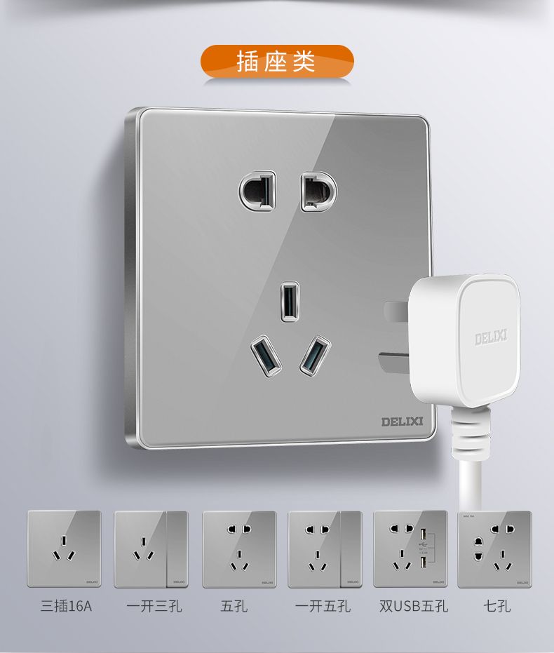 德力西881玻璃星空灰墻壁開(kāi)關(guān)插座 星空灰無(wú)邊框大板玻璃鏡面五孔USB一開(kāi)二開(kāi)三開(kāi)雙控多控開(kāi)關(guān)插座