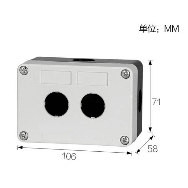 德力西2位按鈕盒 兩位防水按鈕開關(guān)盒 急停開關(guān)控制盒 指示燈防水盒 2孔22mm |