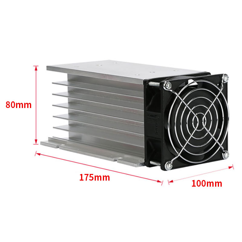 德力西三相固態(tài)繼電器強(qiáng)冷散熱器 適用于CDG3 10-200A三相固態(tài)繼電器 尺寸175*100*80mm 帶風(fēng)扇鋁合金散熱器 |