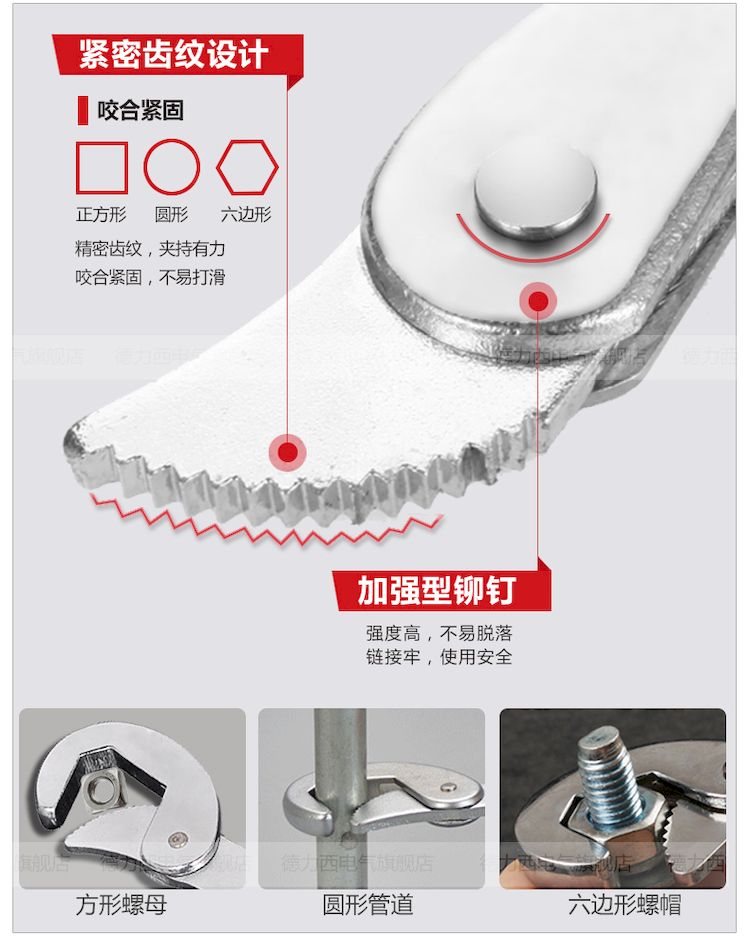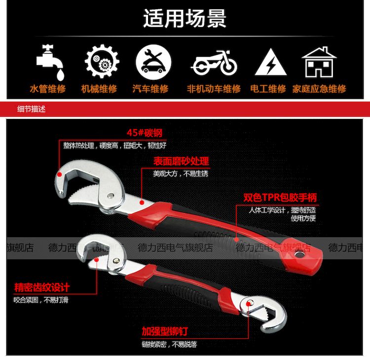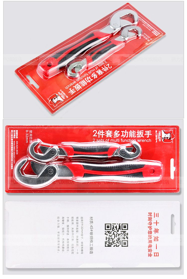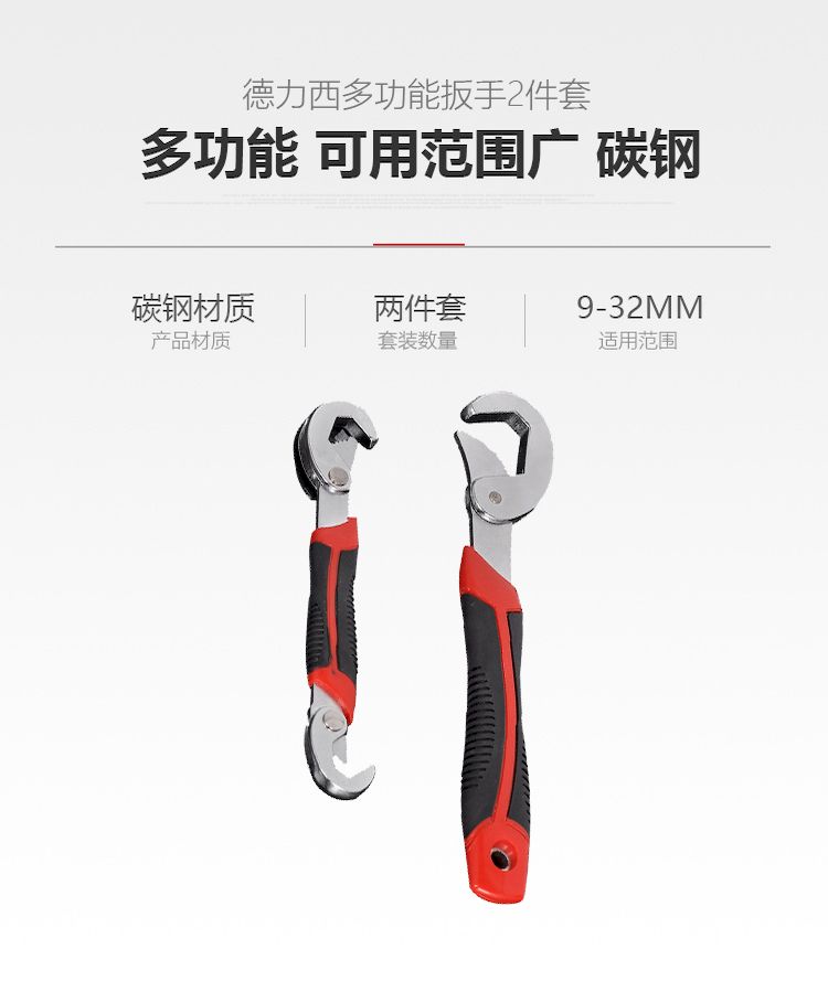 德力西多功能扳手 快速萬用多功能扳手 快速管鉗活動扳手 活口管鉗工具套裝 2件套裝 碳鋼材質(zhì) 適用9-32mm |