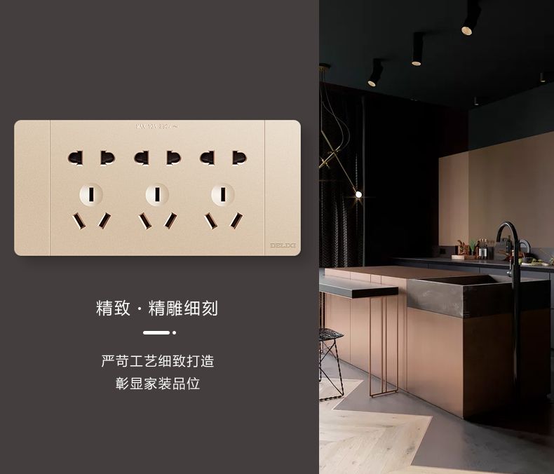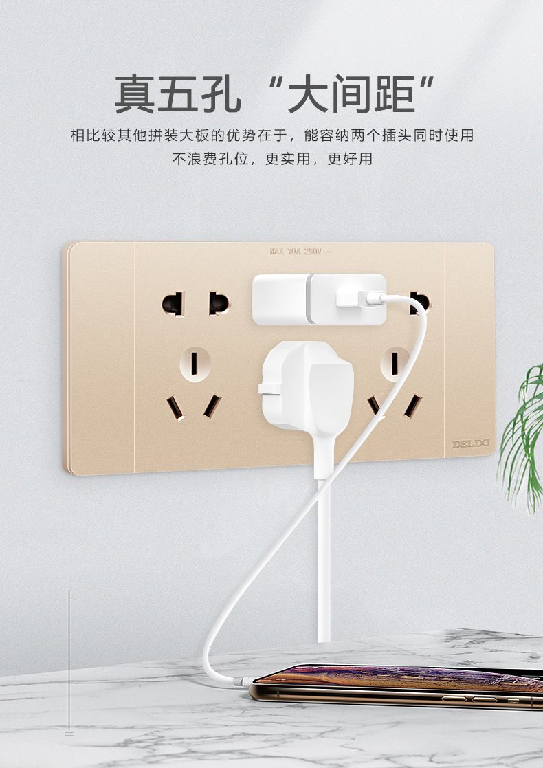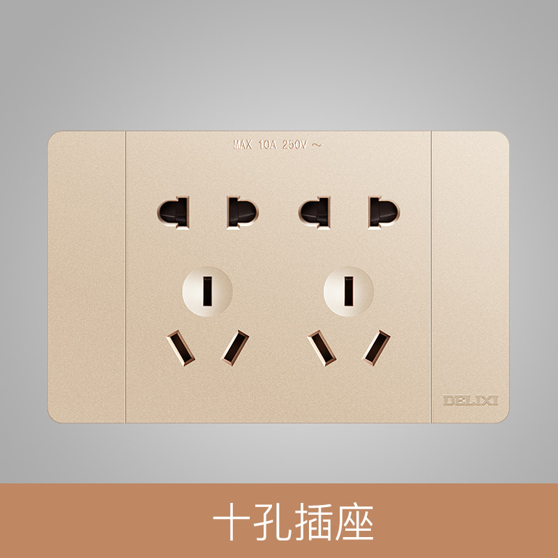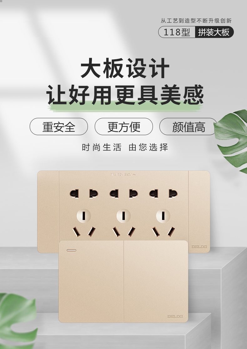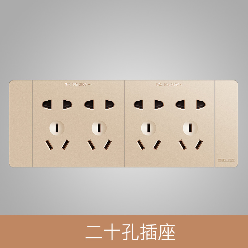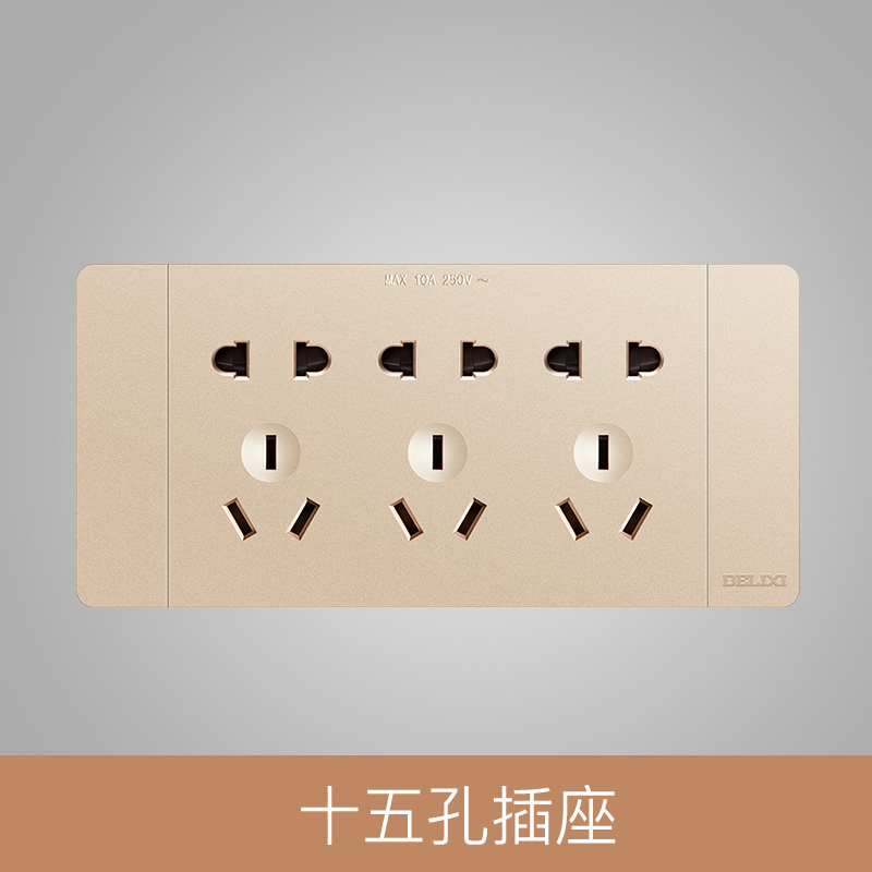德力西118型香檳金開關(guān)插座 118拼裝大板墻壁開關(guān)面板 十孔十五孔二十孔連體插座 |