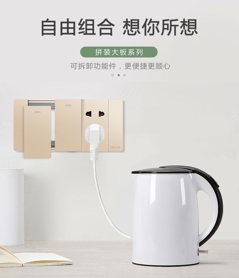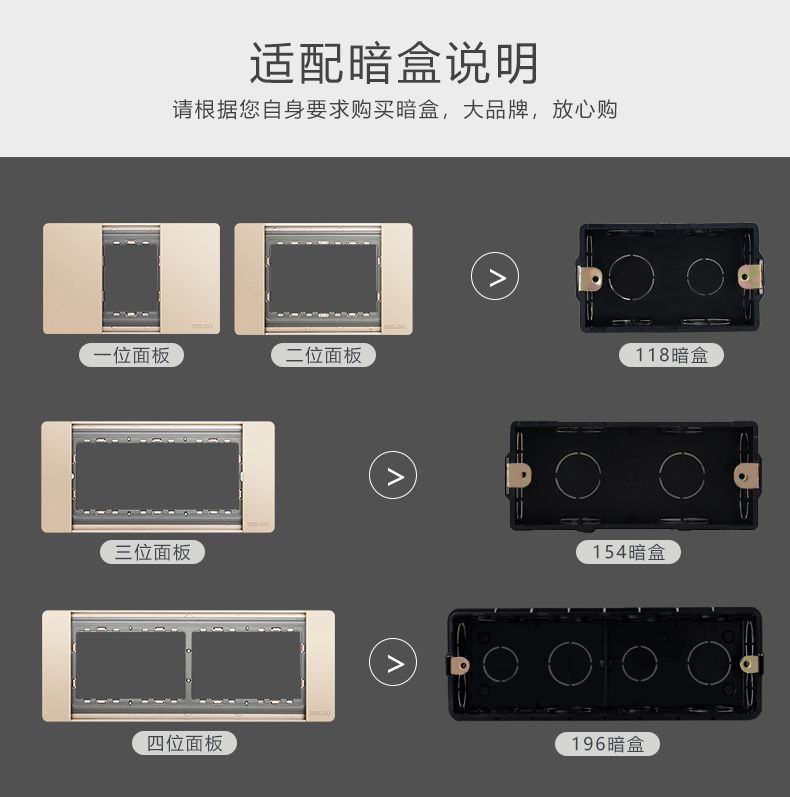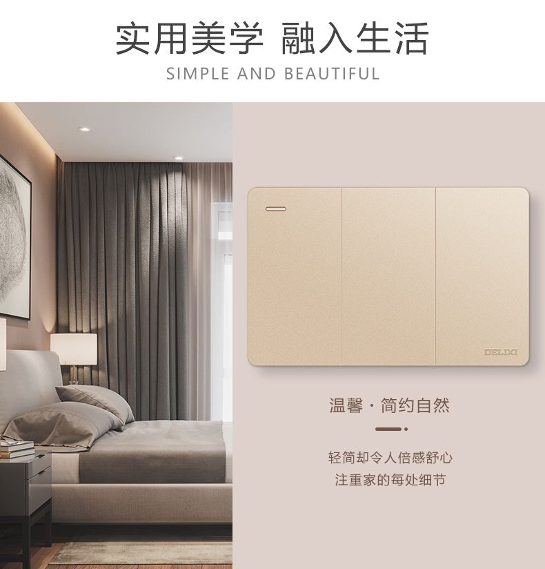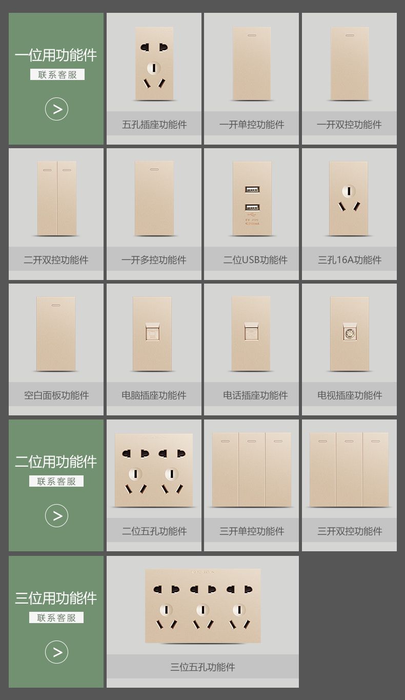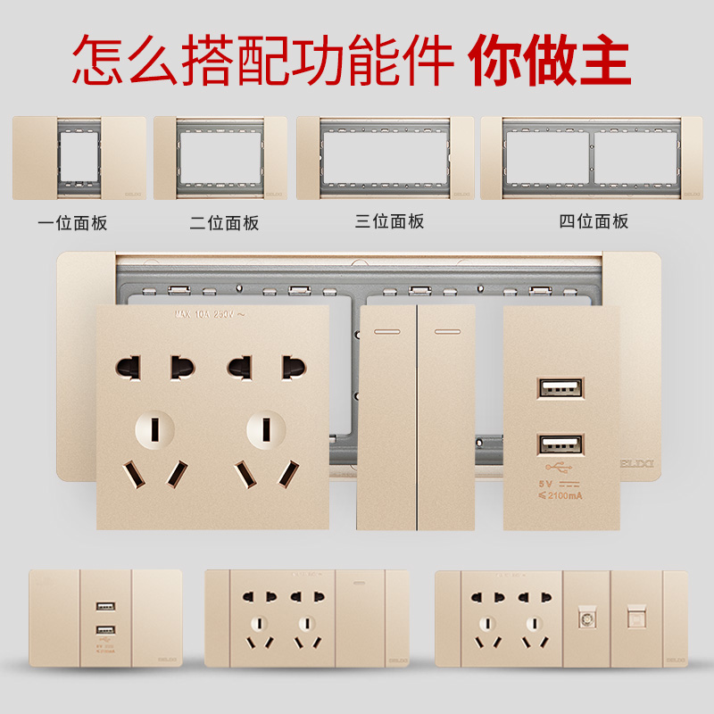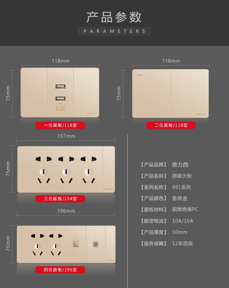 德力西118型香檳金開關(guān)插座 118拼裝大板墻壁開關(guān)面板 十孔十五孔二十孔連體插座 |