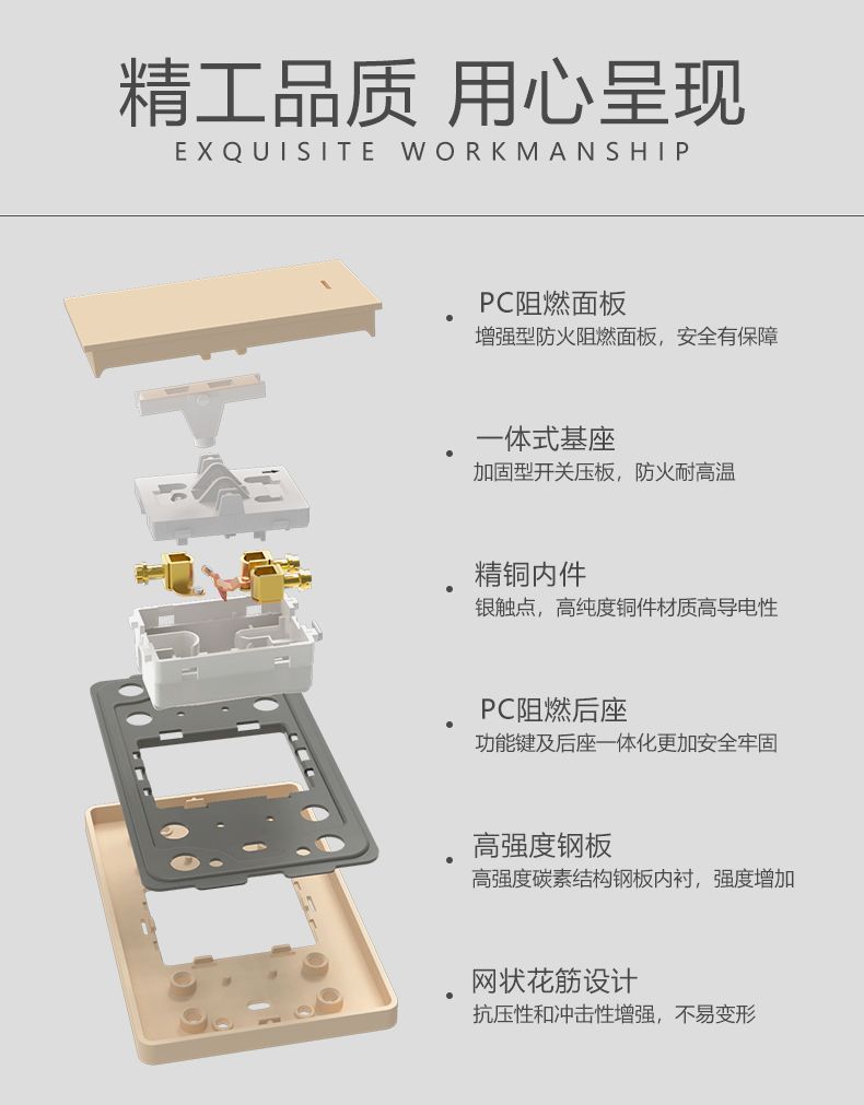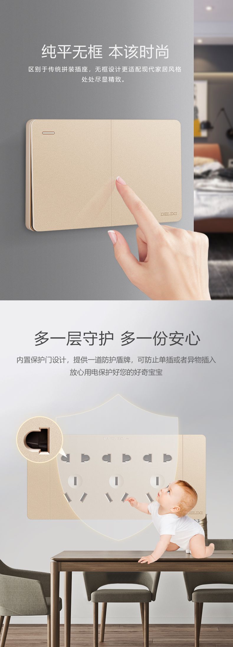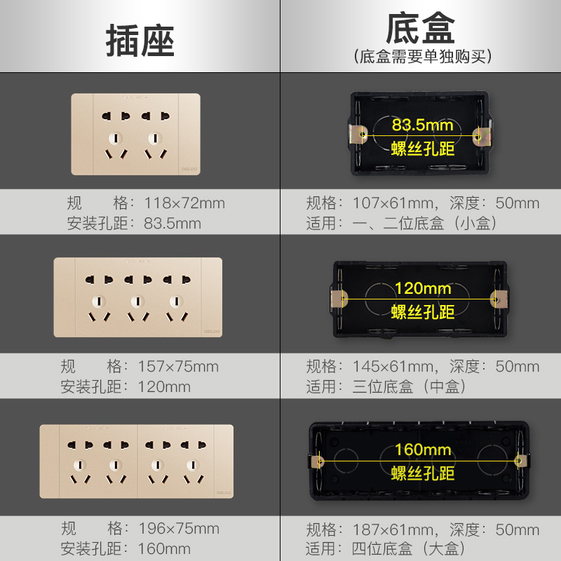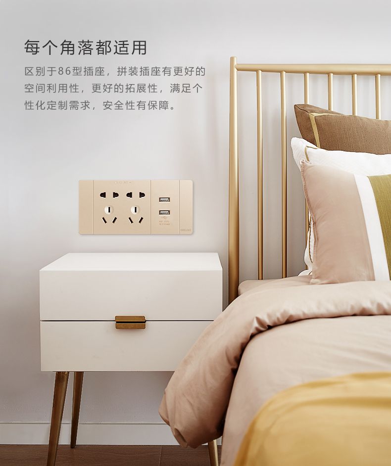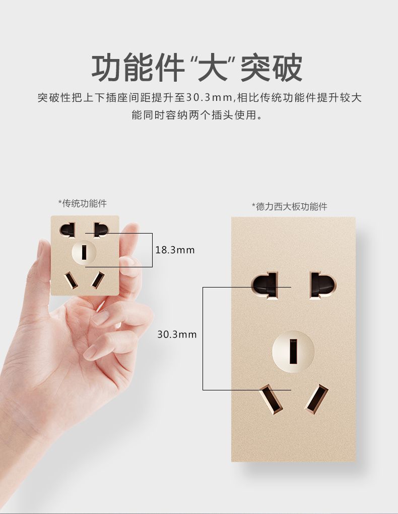德力西118型香檳金開關(guān)插座 118拼裝大板墻壁開關(guān)面板 十孔十五孔二十孔連體插座 |