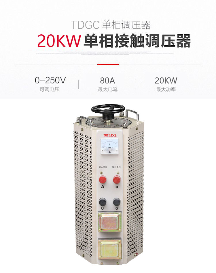 定制  德力西單相調(diào)壓器20Kva TDGC-20KW單相調(diào)壓器 德力西原裝正品 20000瓦單相接觸調(diào)壓器 調(diào)壓范圍0-250V