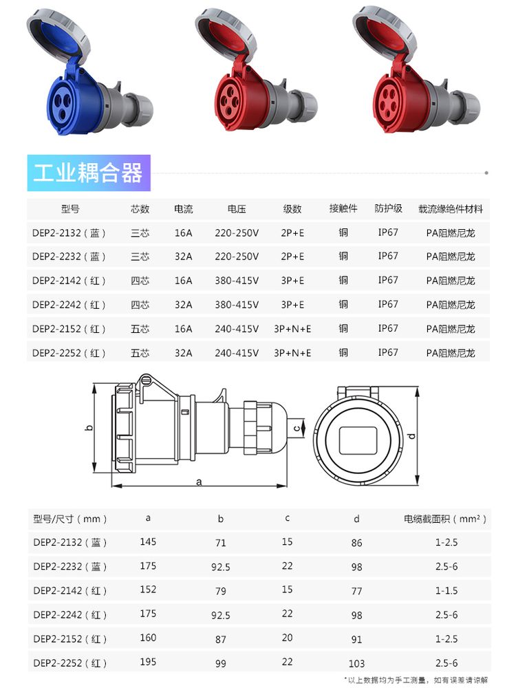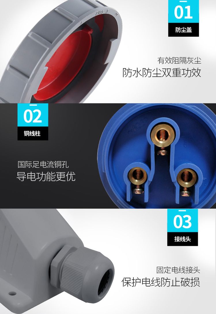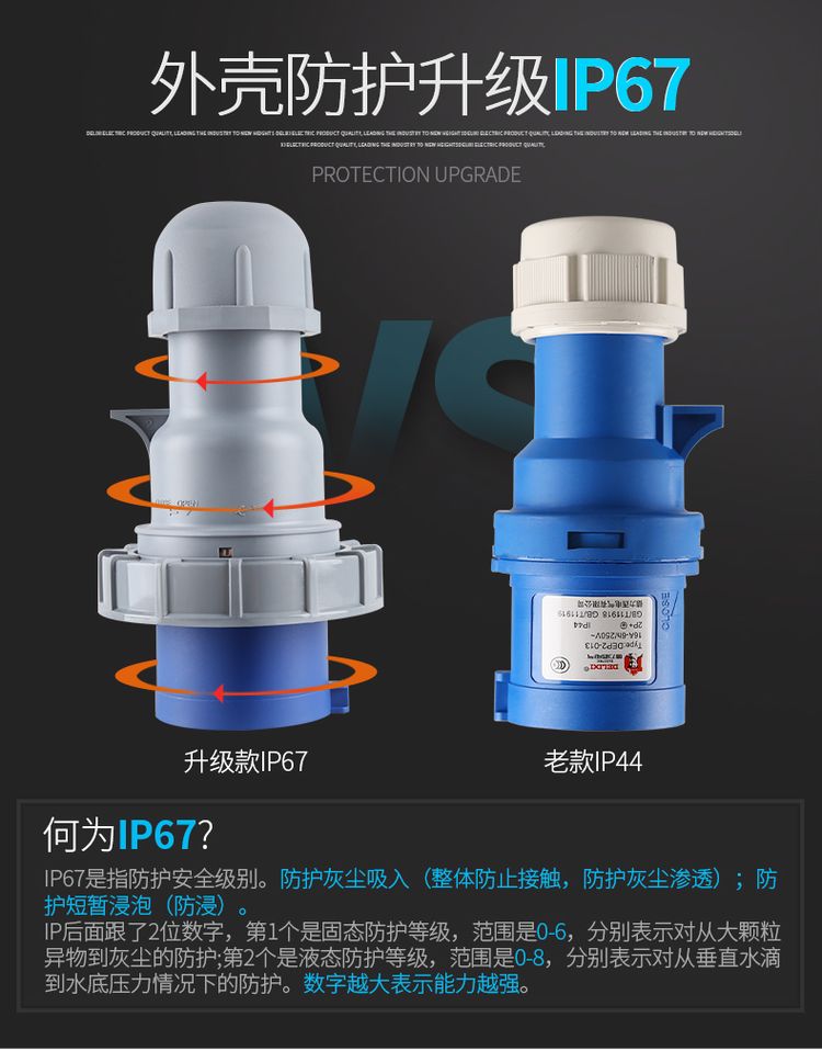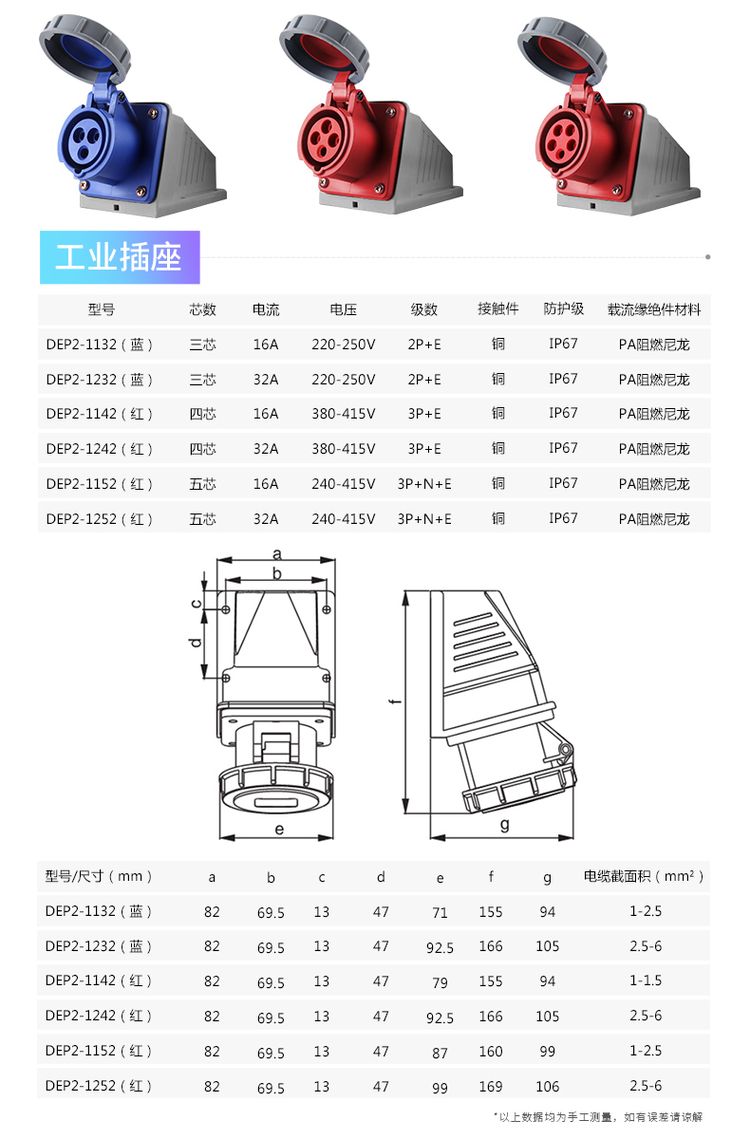 德力西工業(yè)插座明裝 3芯16A/32A/63A防水防塵工業(yè)插座 防護等級IP67明裝工業(yè)插座 |