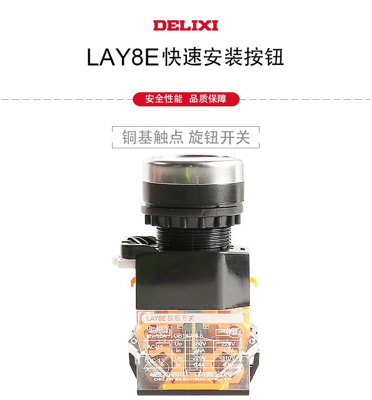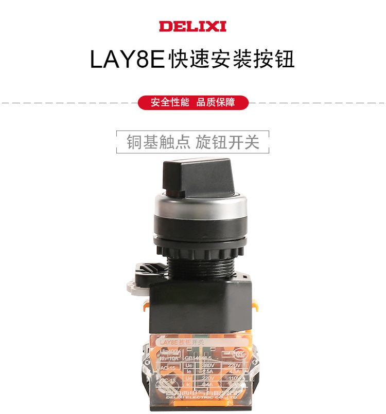德力西LAY8E-11X/2旋鈕開關 兩檔旋鈕鈕開關 2位置旋鈕 觸點一開一閉 快速安裝按鈕 一鍵安裝拆卸式按鈕 |