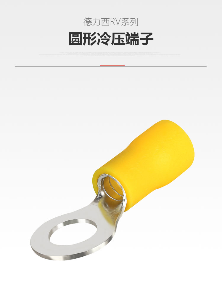 德力西RV冷壓端子 RV圓形預(yù)絕緣端子 接線圓孔端頭 RV銅接線鼻 表面鍍銀 絕緣護(hù)套 規(guī)格1.25/2/3.5/5.5可選 |