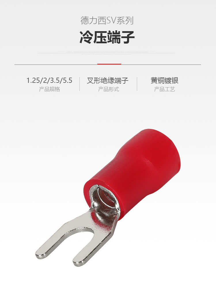 德力西SV叉形預(yù)絕緣端子 SV叉形冷壓端子 叉形接線端子銅鼻線耳 表面鍍銀 絕緣護(hù)套 規(guī)格1.25/2/3.5/5.5可選