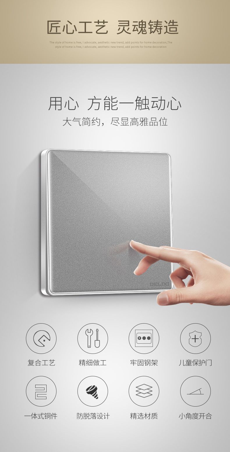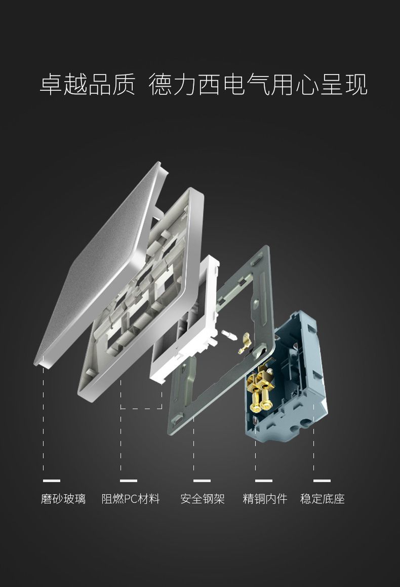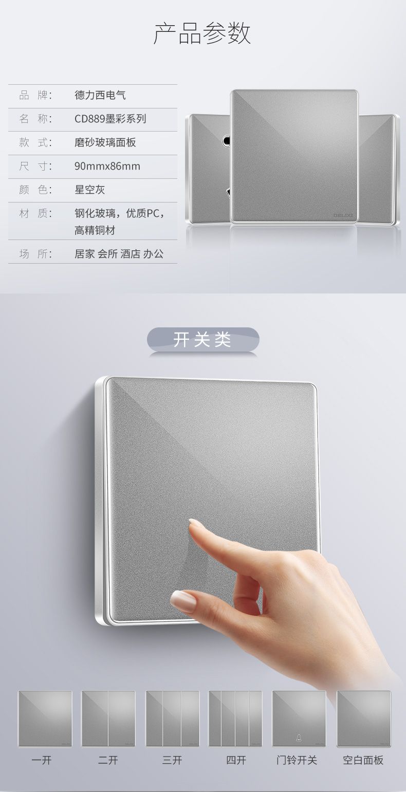 德力西889墨彩磨砂星空灰 2.5D鋼化磨砂玻璃開關(guān)插座 復(fù)古風(fēng)潮手機屏質(zhì)感墻壁開關(guān) |