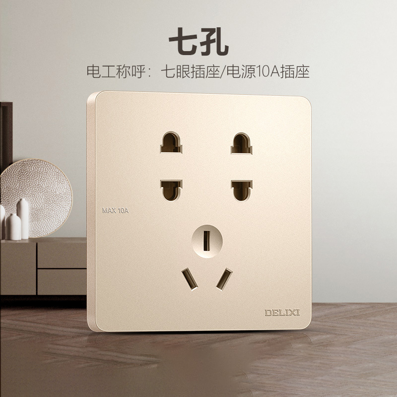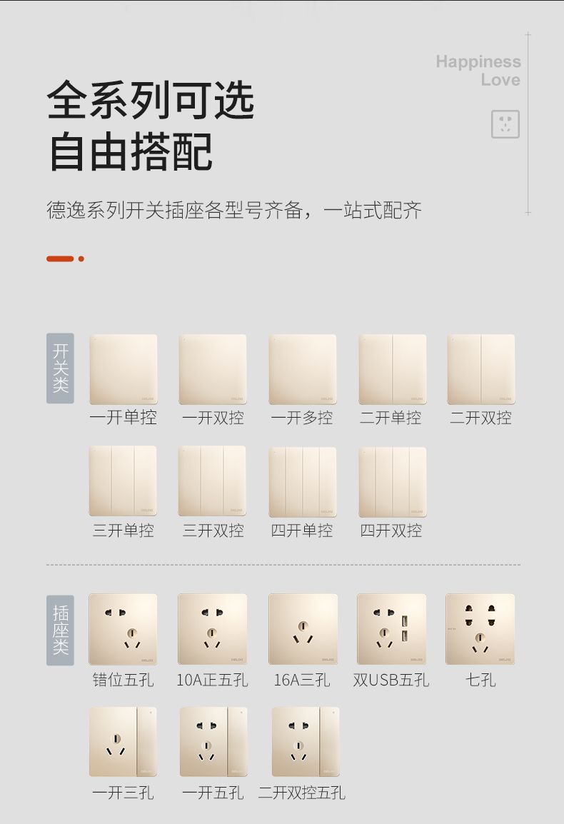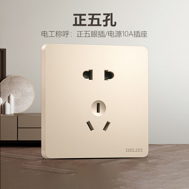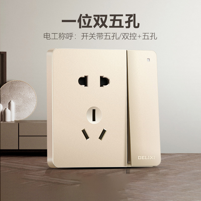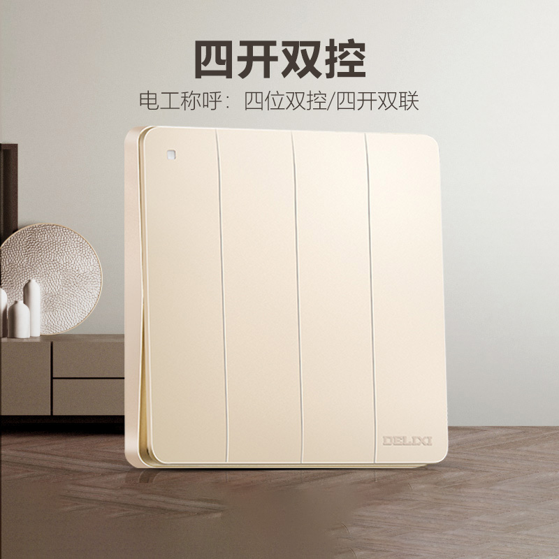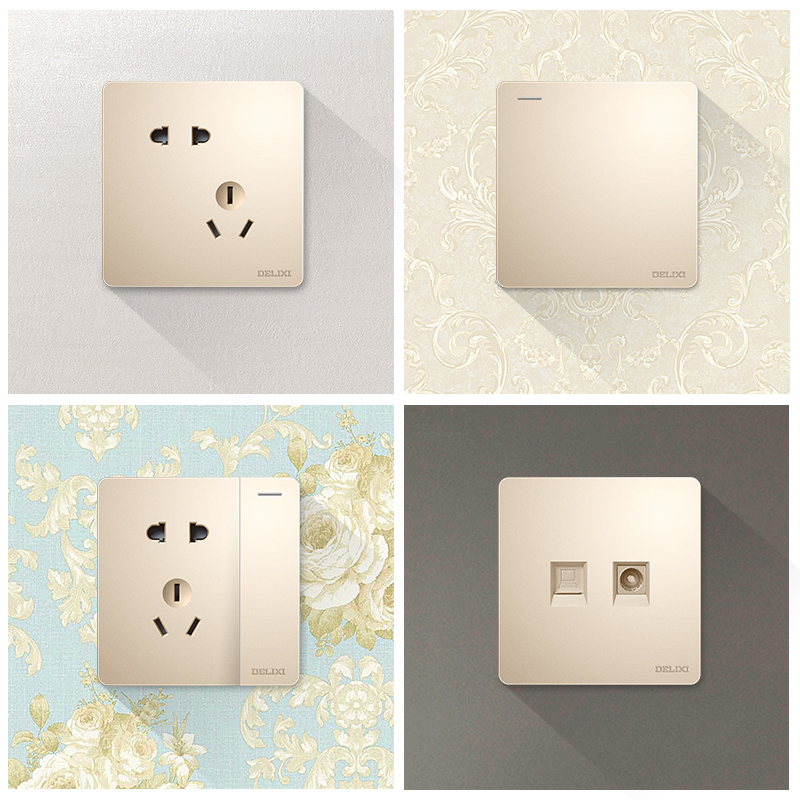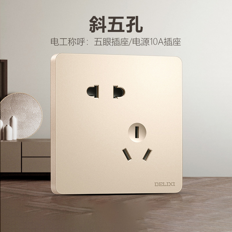 德力西217美學(xué)大板香檳金 純平大板升級(jí)款暗裝墻壁開關(guān) 斜五孔10A插座一開二開三開四開 |