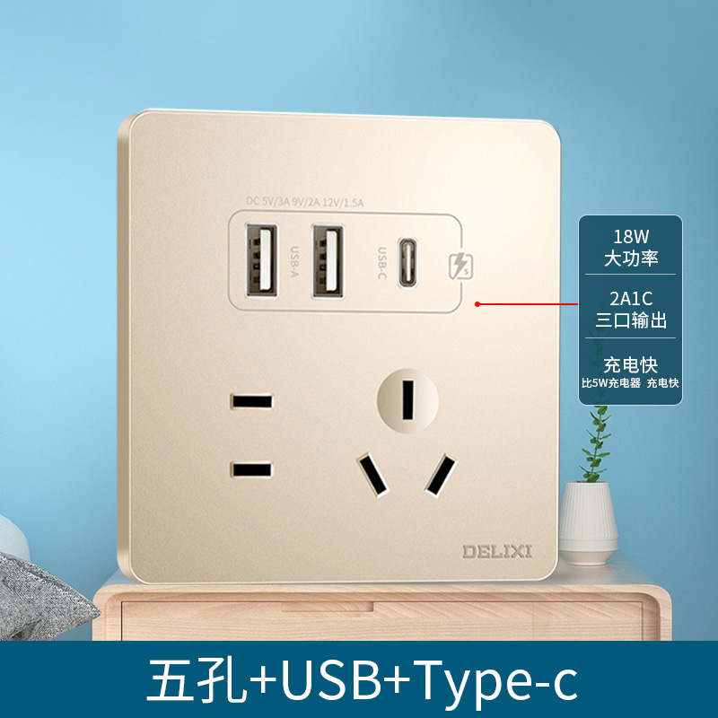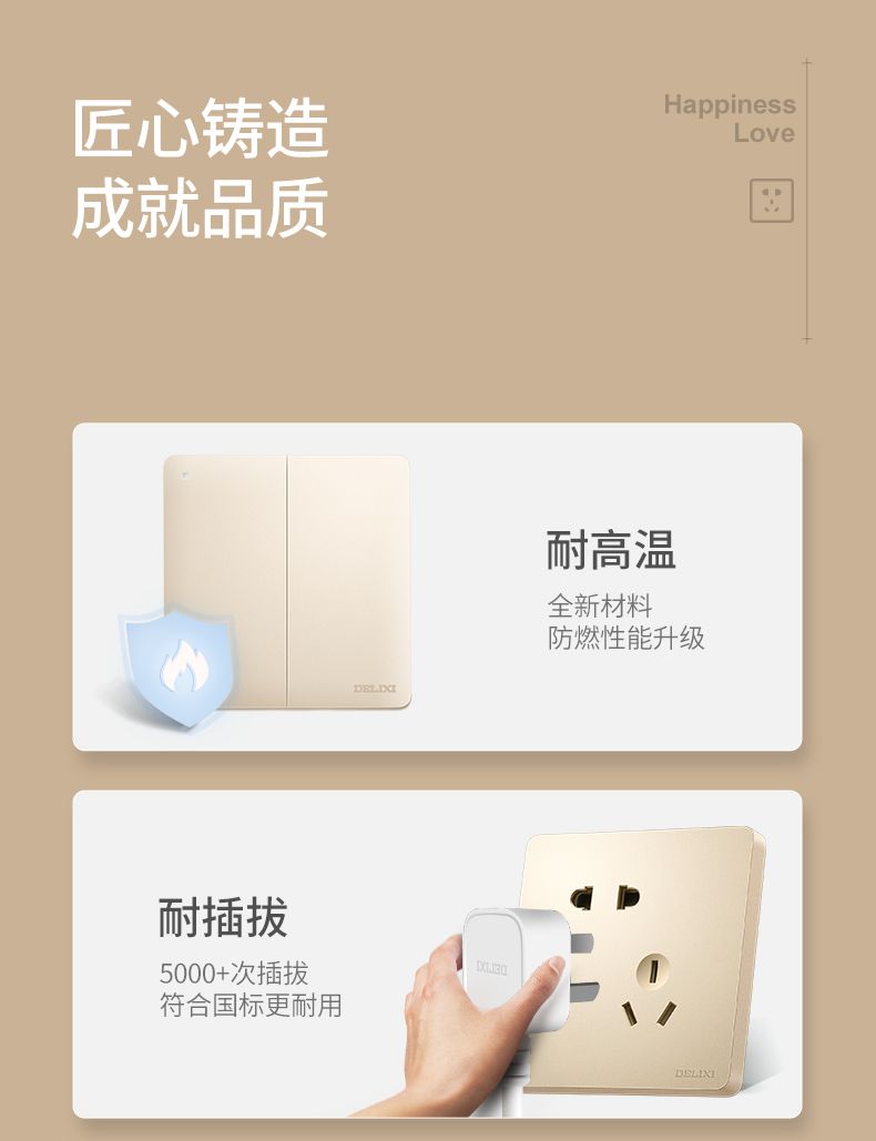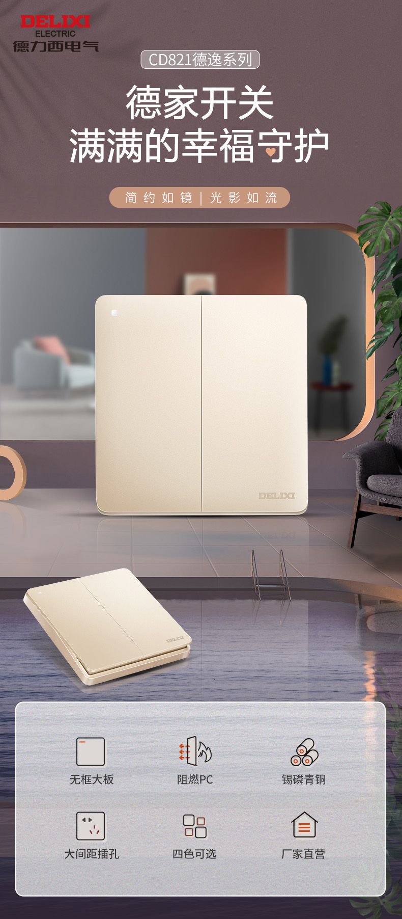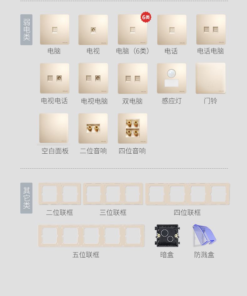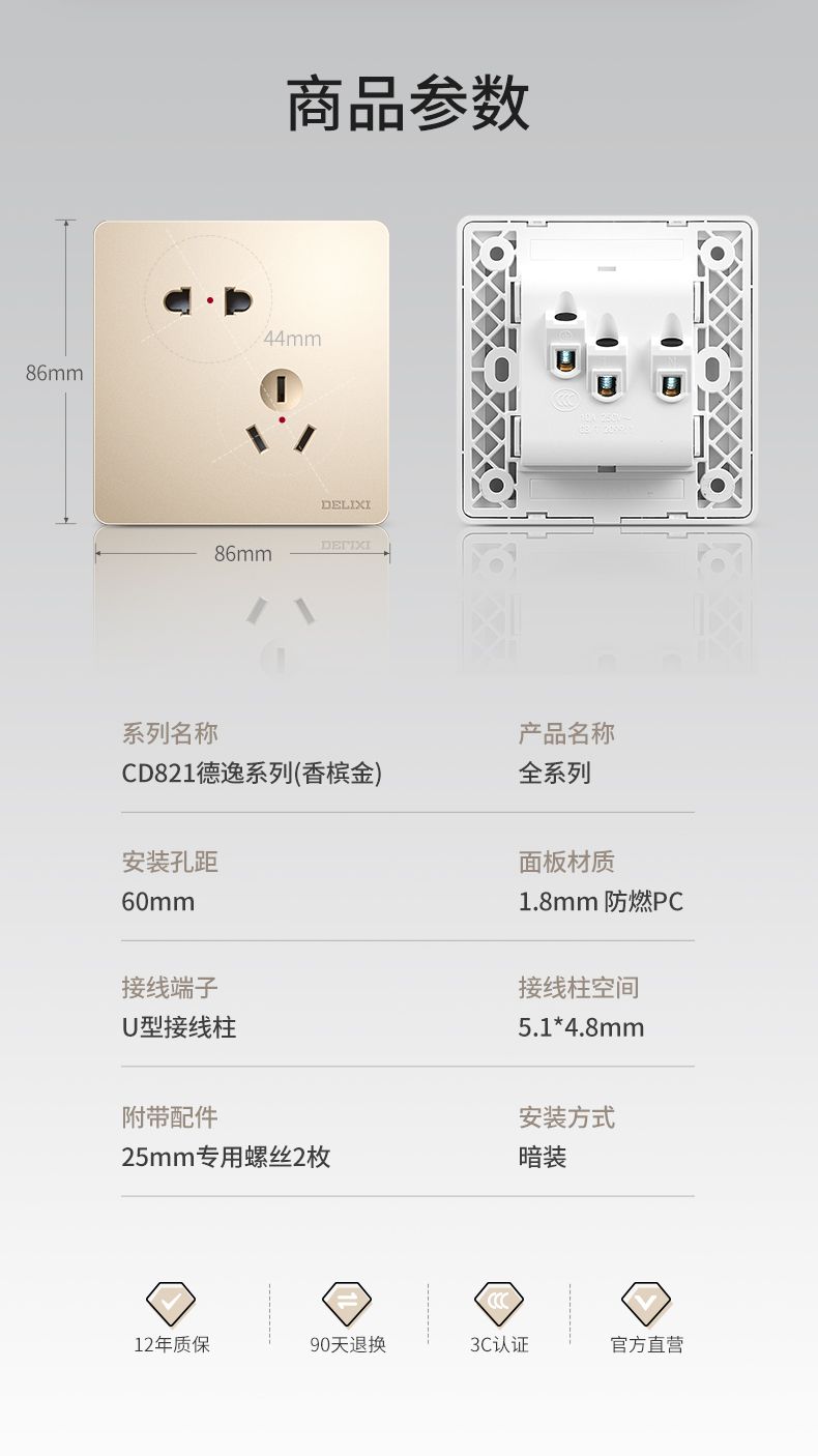 德力西217美學(xué)大板香檳金 純平大板升級(jí)款暗裝墻壁開關(guān) 斜五孔10A插座一開二開三開四開 |