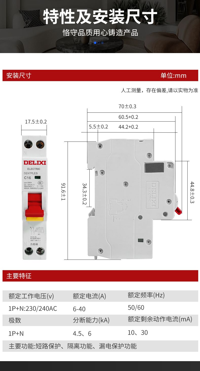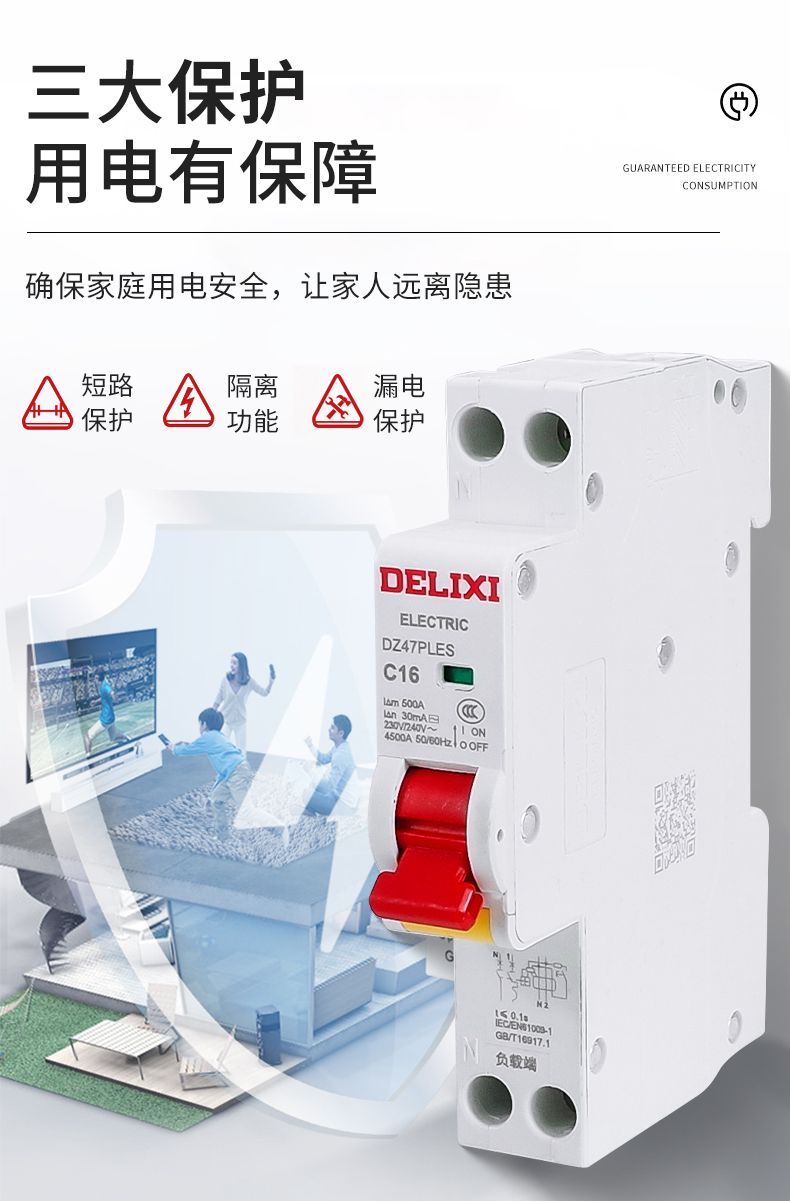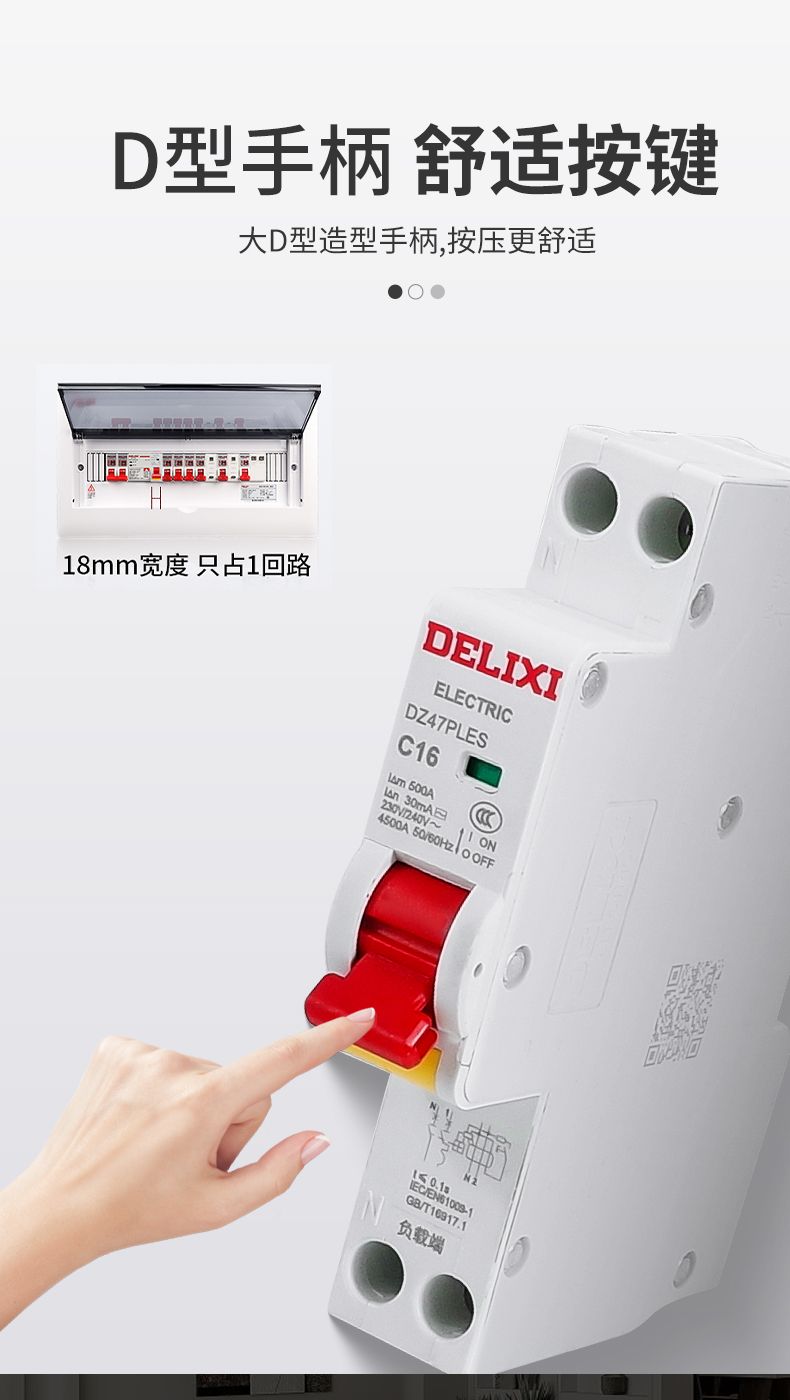 德力西漏電開關(guān)DZ47PLEs-40單片雙極漏電斷路器 相線+中性線漏電開關(guān) 窄型漏電開關(guān) 寬度18mm |