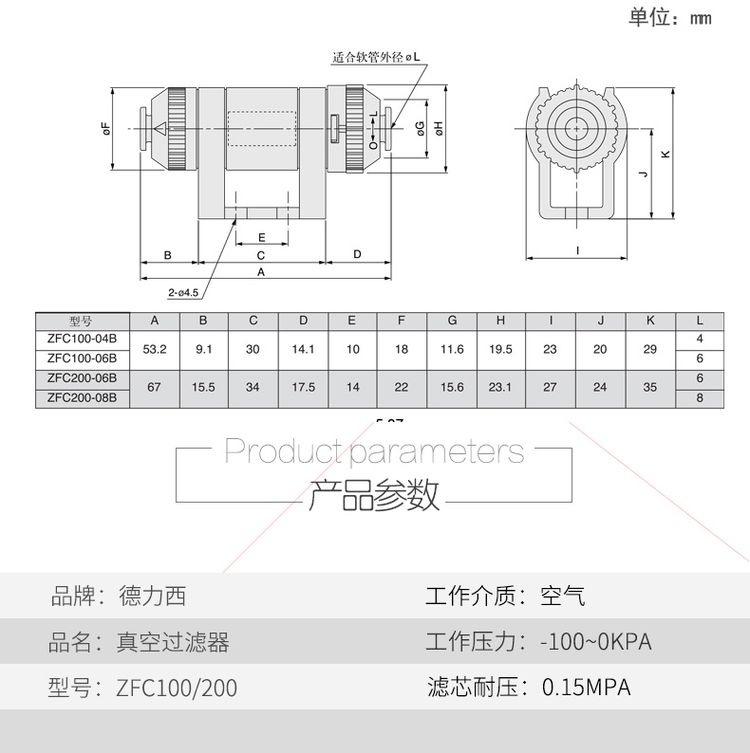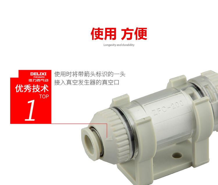 德力西真空發(fā)生器過濾器ZFC100-04B/06B ZFC200-06/08 負壓過濾器 |