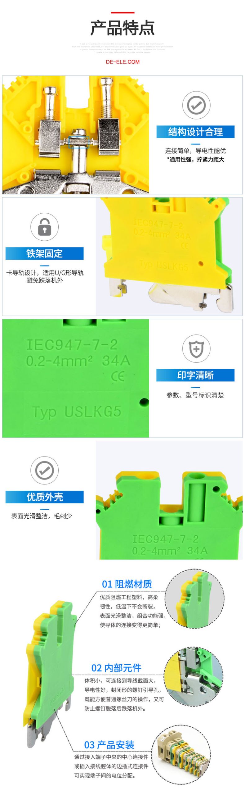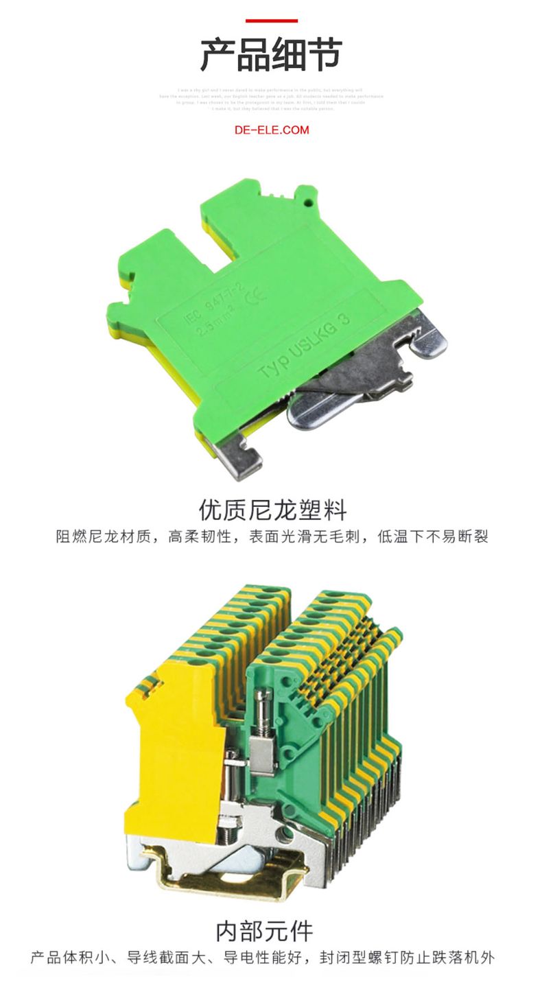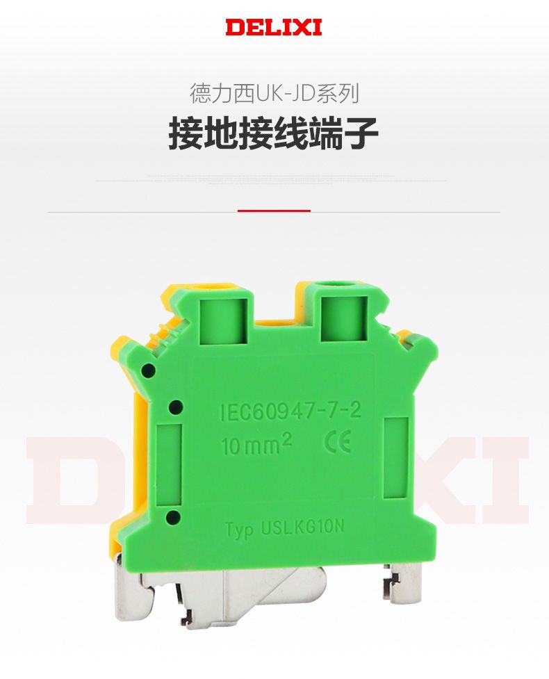 定制 德力西UK-JD黃綠雙色接地端子排 阻燃接地接線板 UK-2.5JD/3JD/5JD/6JD/10JD/16JD阻燃外殼黃銅導(dǎo)件 |