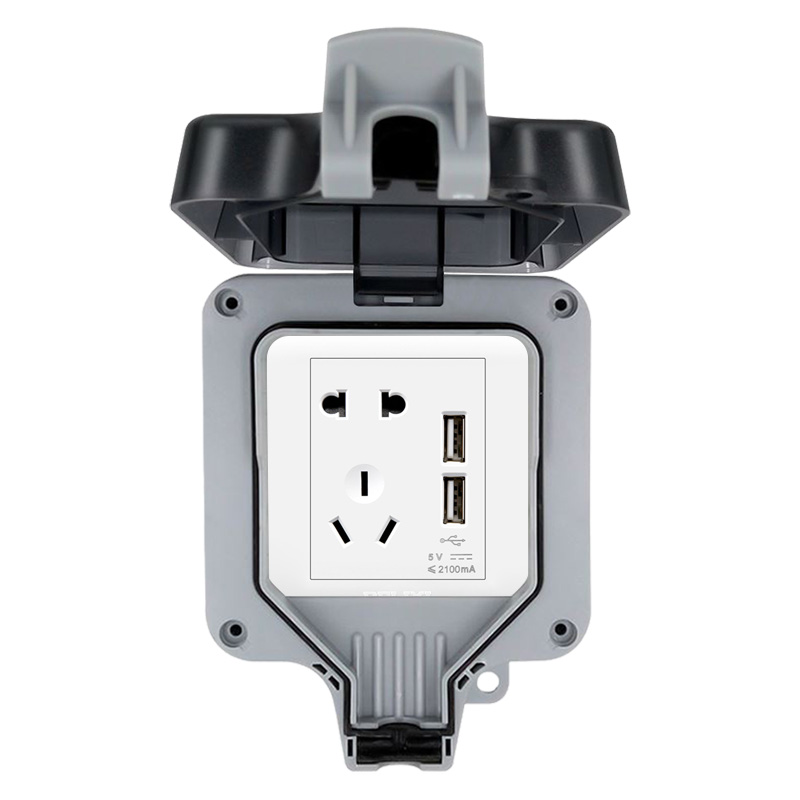 德力西戶外防水插座五孔帶USB 防水防塵防腐蝕插座 明裝防水插座防雨密閉盒 明裝IP66防護等級 |