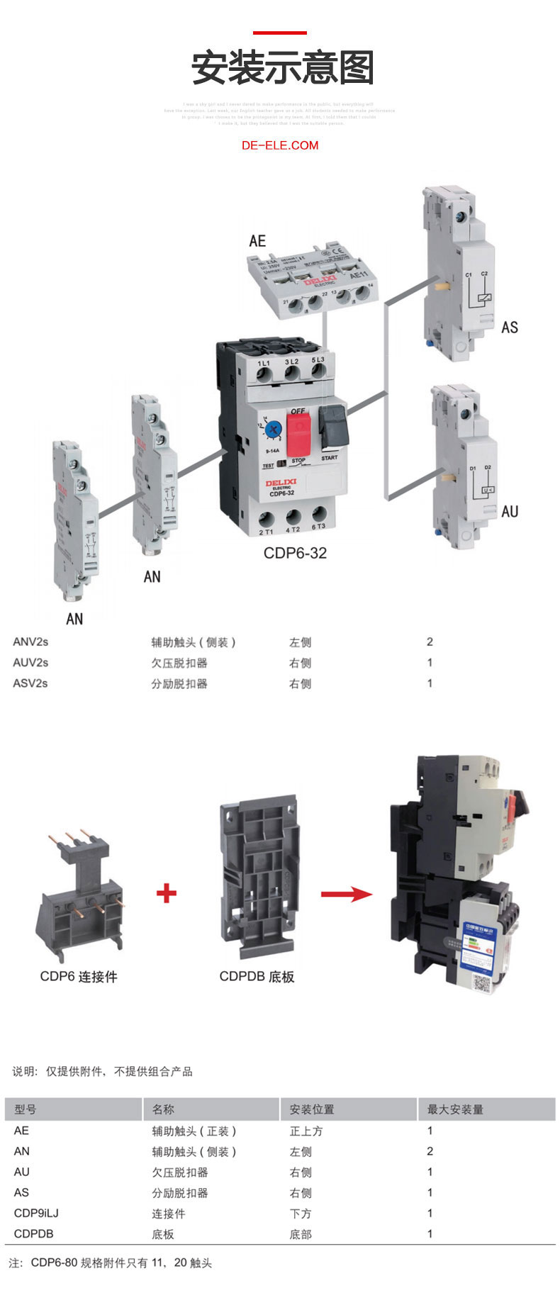 定制 德力西CDP6斷路器側(cè)裝輔助AN11(1常開1常閉)/AN20(2常開) |