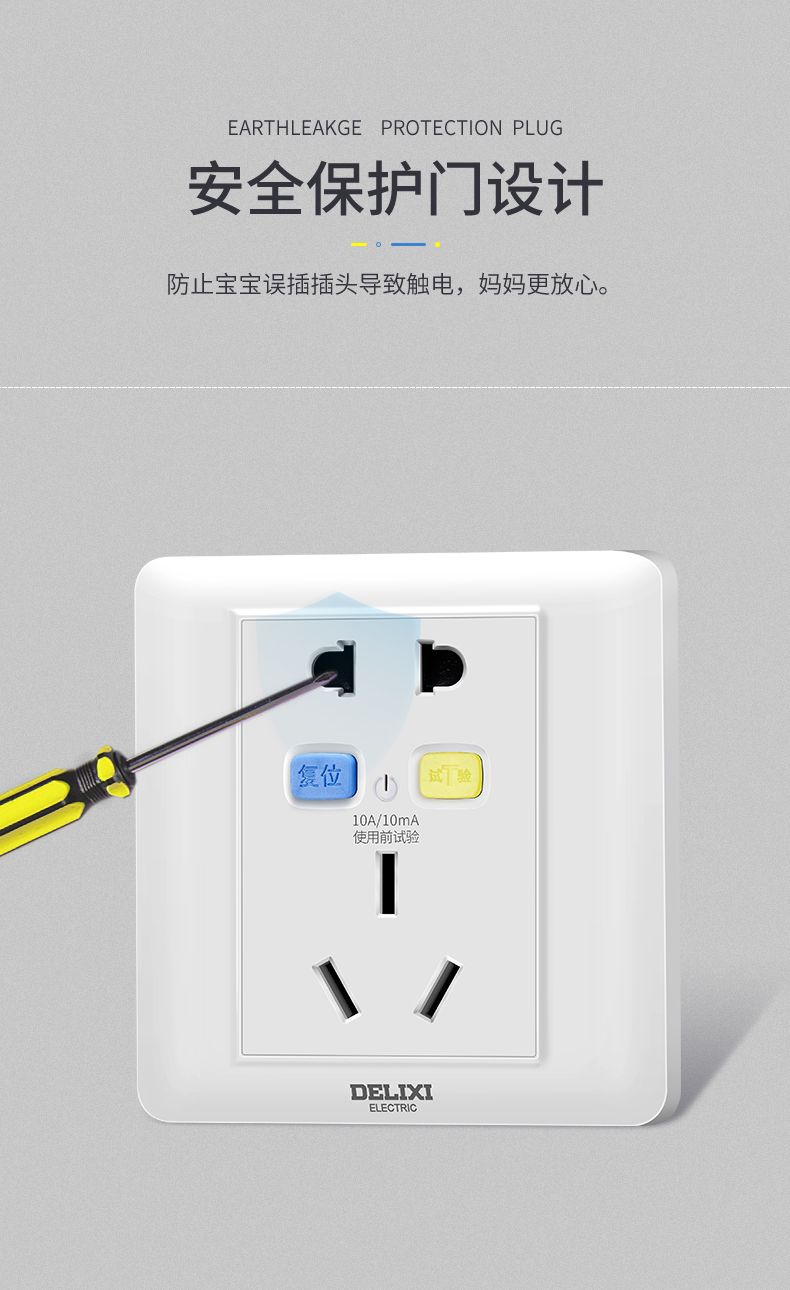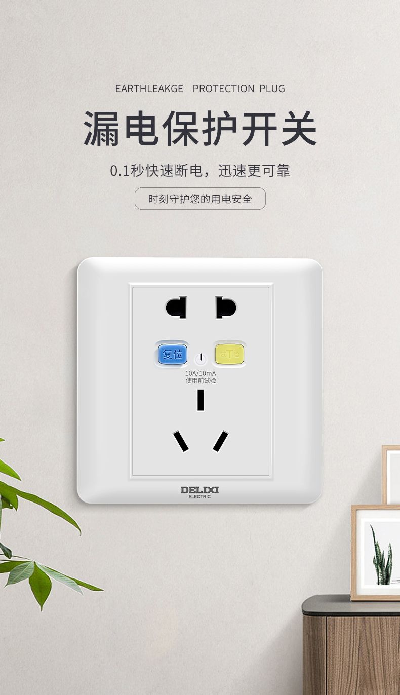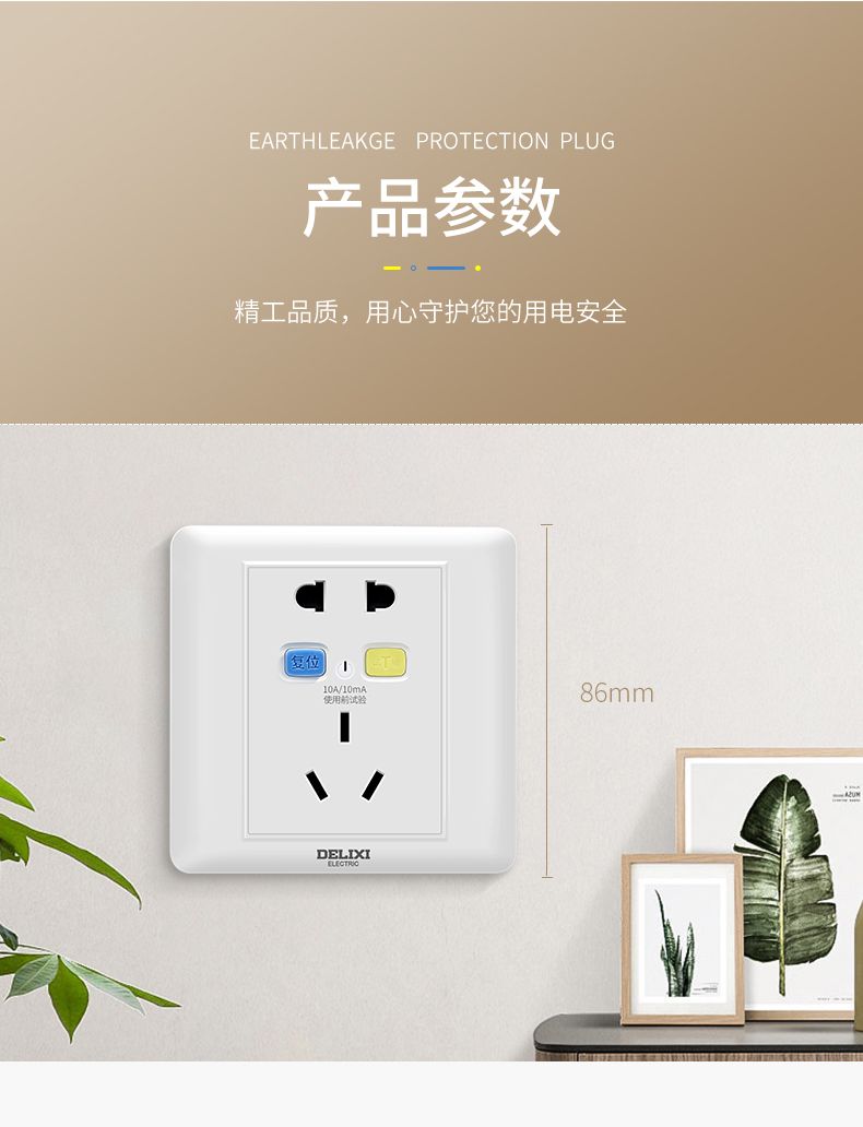 德力西空調(diào)熱水器漏電保護插座 86型漏電開關(guān)插座10A16A漏電保護器插座 |