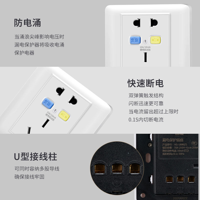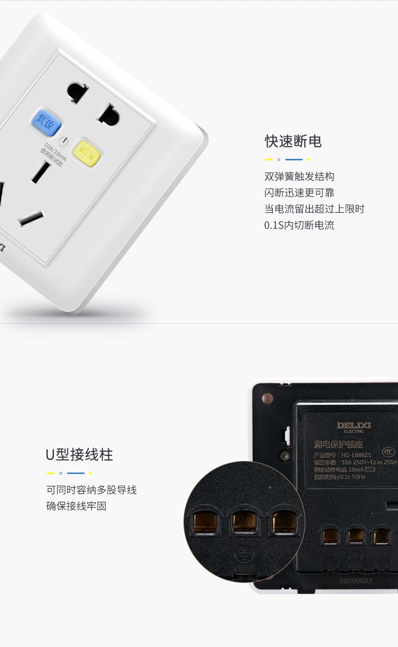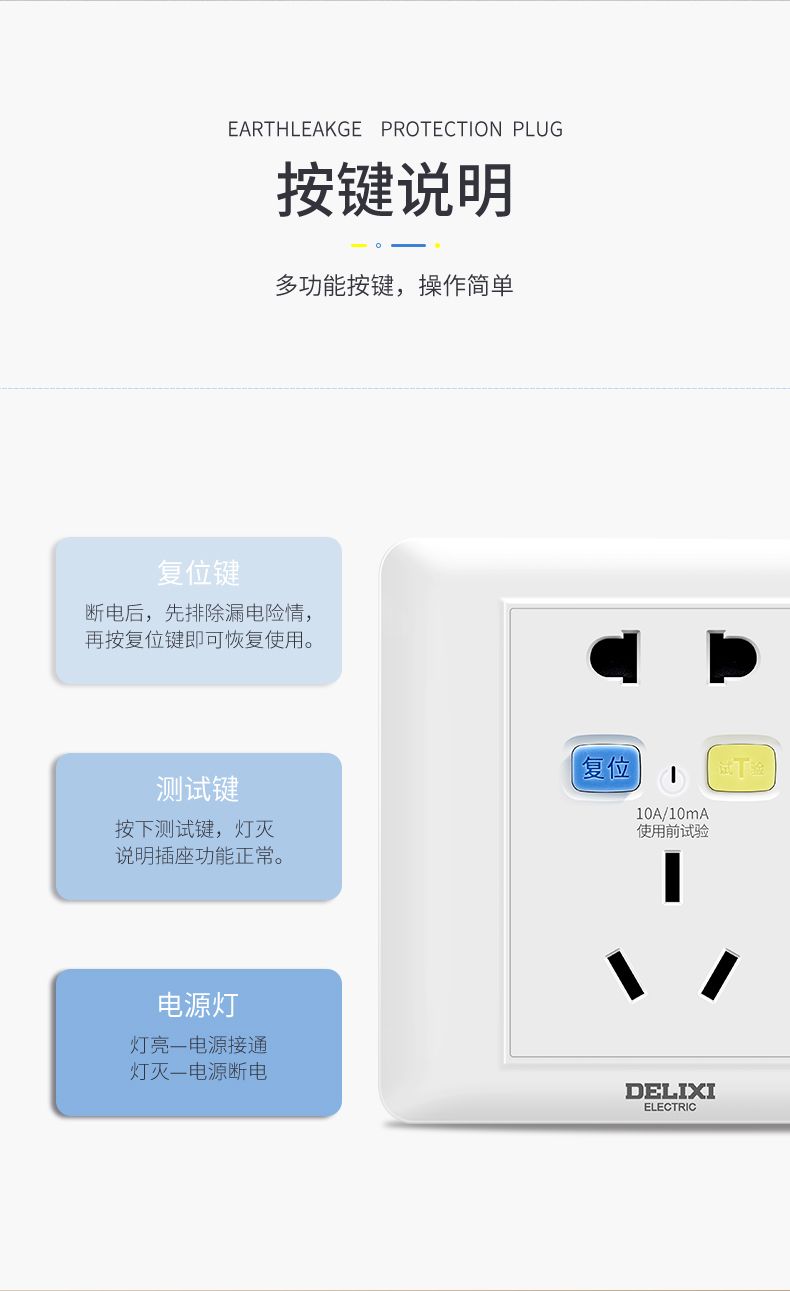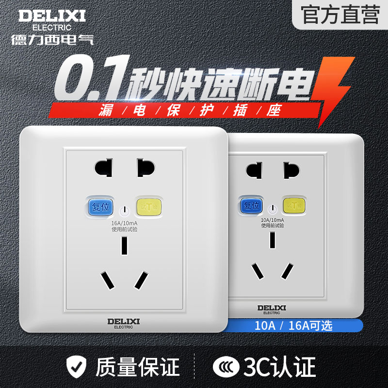 德力西空調(diào)熱水器漏電保護插座 86型漏電開關(guān)插座10A16A漏電保護器插座 |