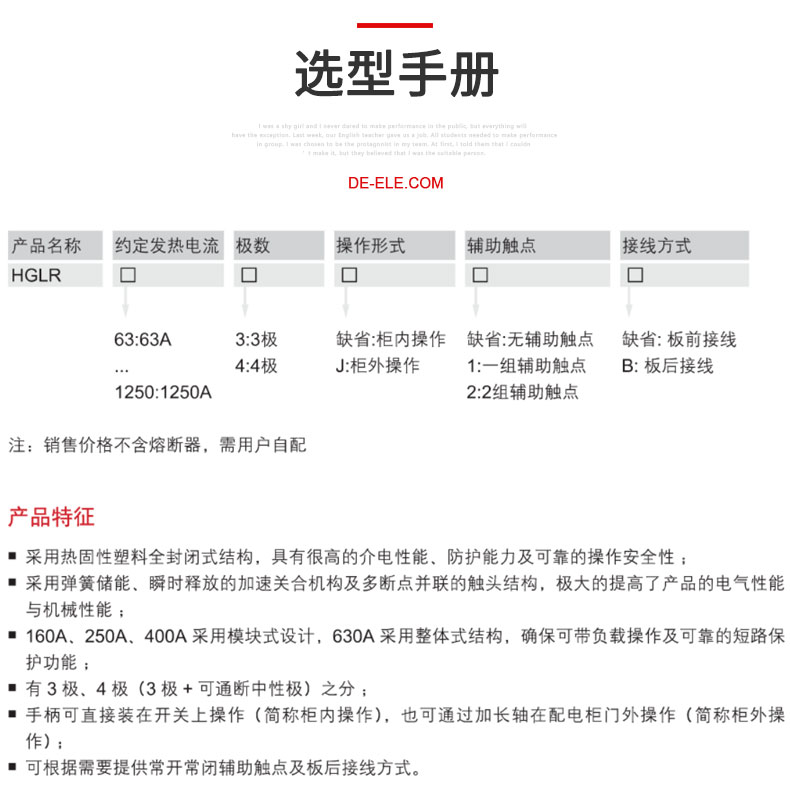 定制 德力西HGLR隔離開關(guān)熔斷器組 隔離開關(guān)帶熔芯 熔斷器式負(fù)荷隔離開關(guān) 柜內(nèi)操作 【定制產(chǎn)品】 |