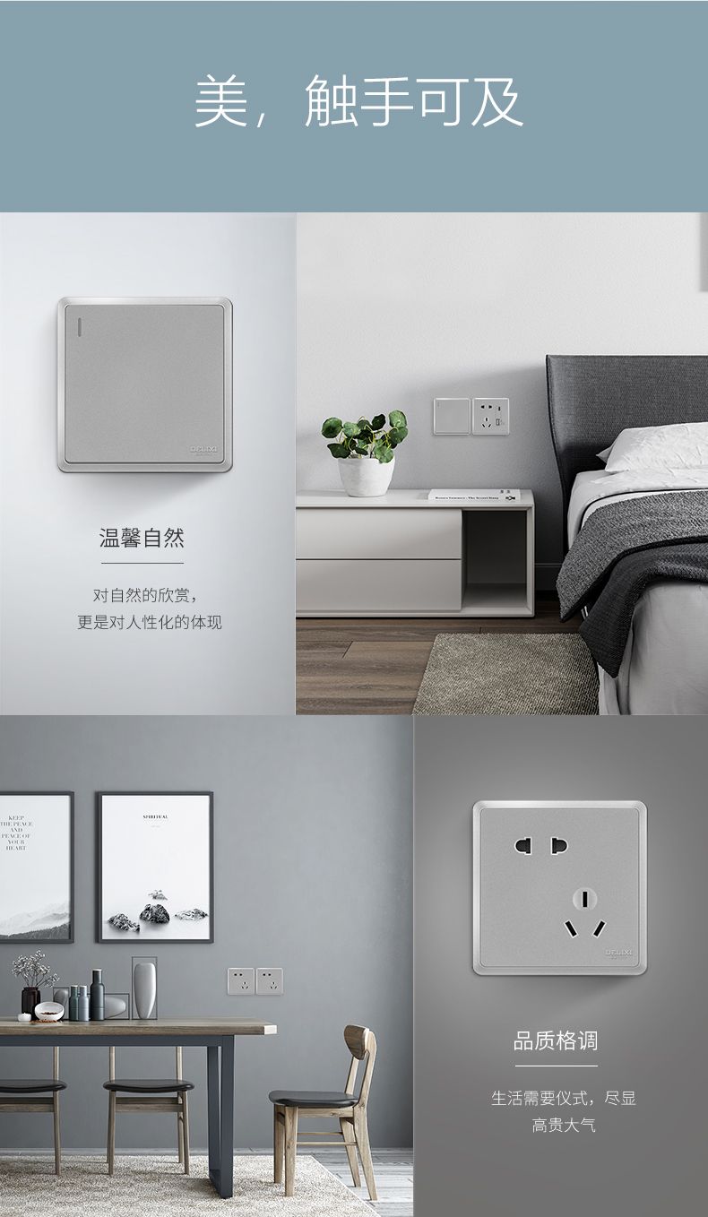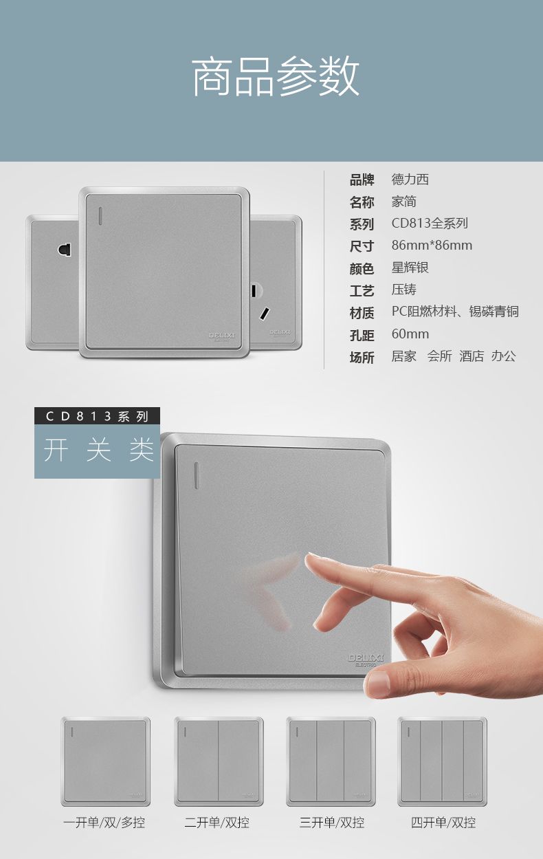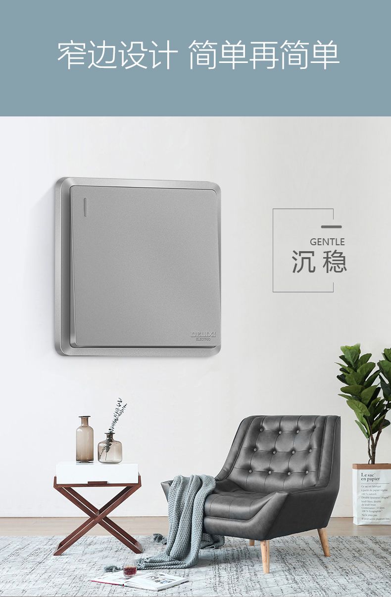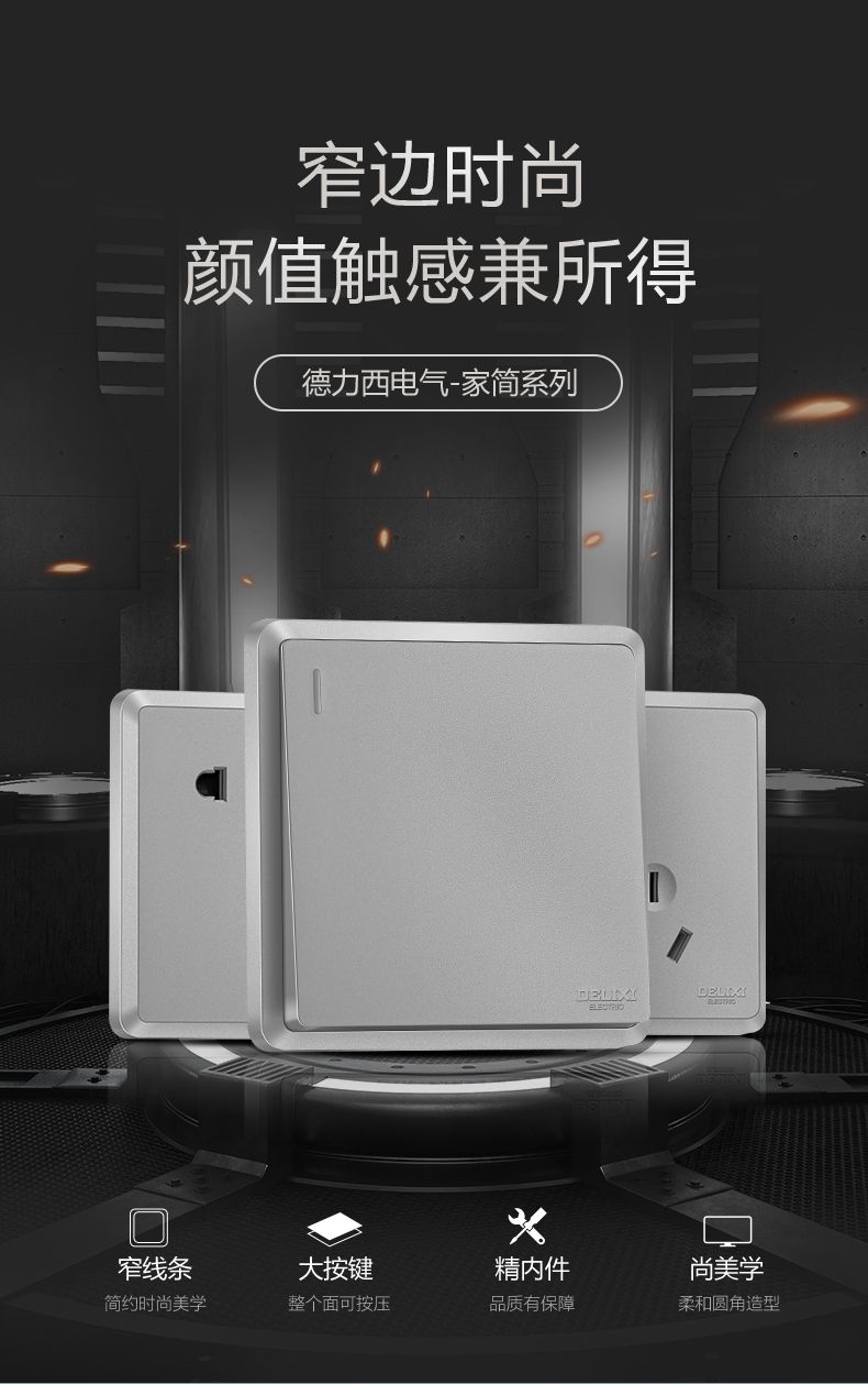 德力西813窄邊框星輝銀開關(guān)插座 窄線條時尚大按鍵 柔和圓角簡單沉穩(wěn)內(nèi)斂墻壁開關(guān)面板 |