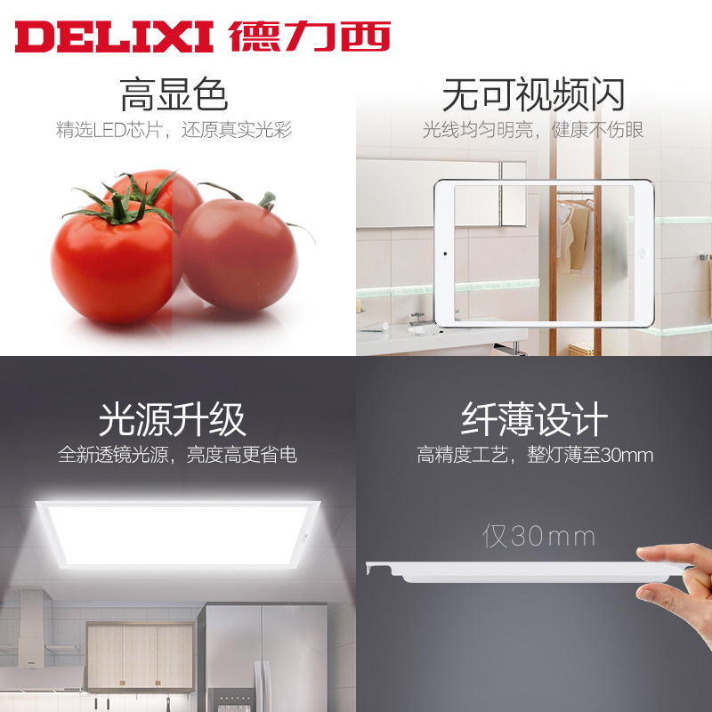 德力西LED集成吊頂燈 平板燈 衛(wèi)生間廚房鋁扣板 廚衛(wèi)燈尺寸300x300