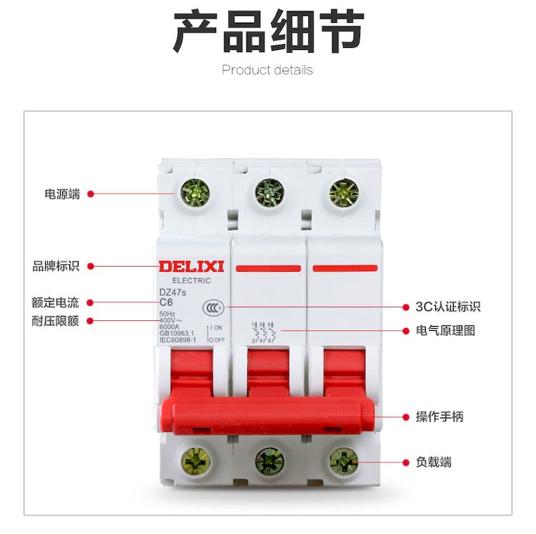 定制 德力西新款紅手柄斷路器 DZ47s-2P/1A/2A/3A/4A/5A/6A/10A C型 DZ47斷路器占2路 【定制產(chǎn)品】 |
