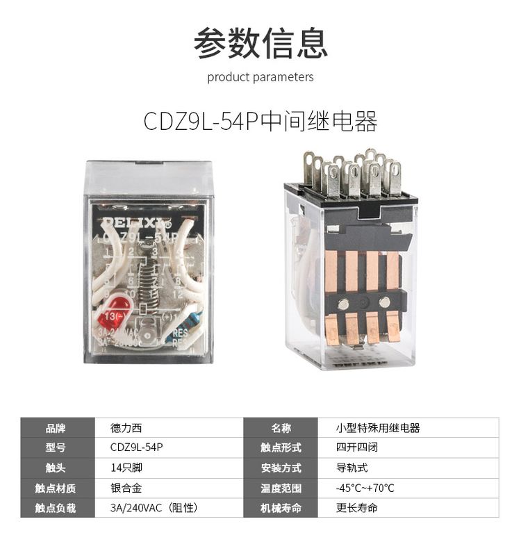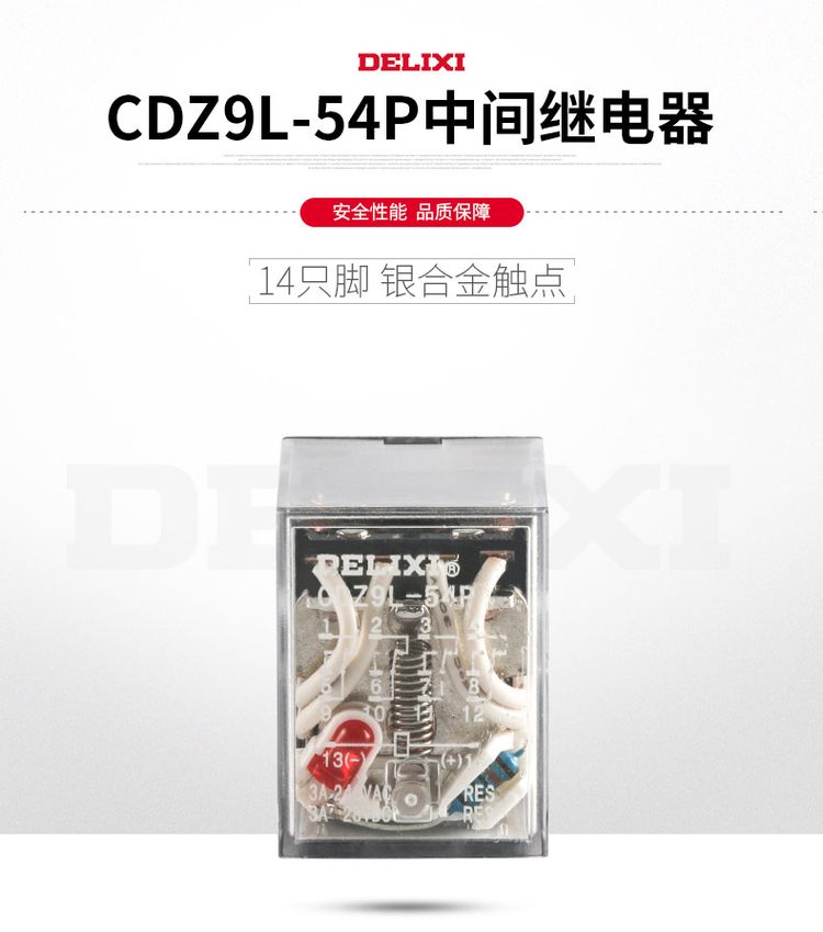德力西小型中間繼電器CDZ9-HH54PL(14只腳) 耐壓400V 通用型小型繼電器MY4 德力西小型繼電器質(zhì)量可靠 部分規(guī)格訂單產(chǎn)品 |