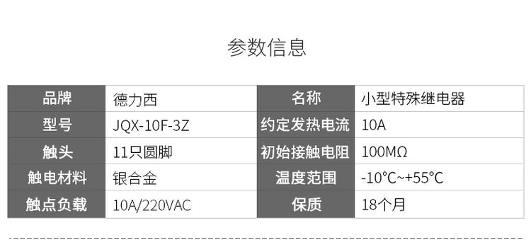 德力西小型通用繼電器JQX-10F/3Z(11只腳) 圓形大功率小型繼電器10A |