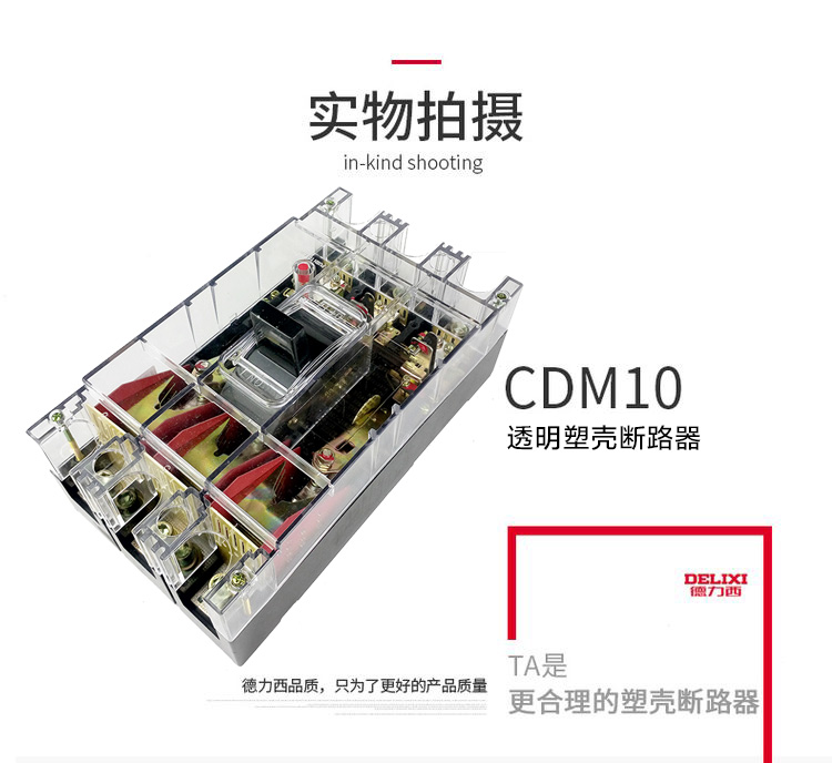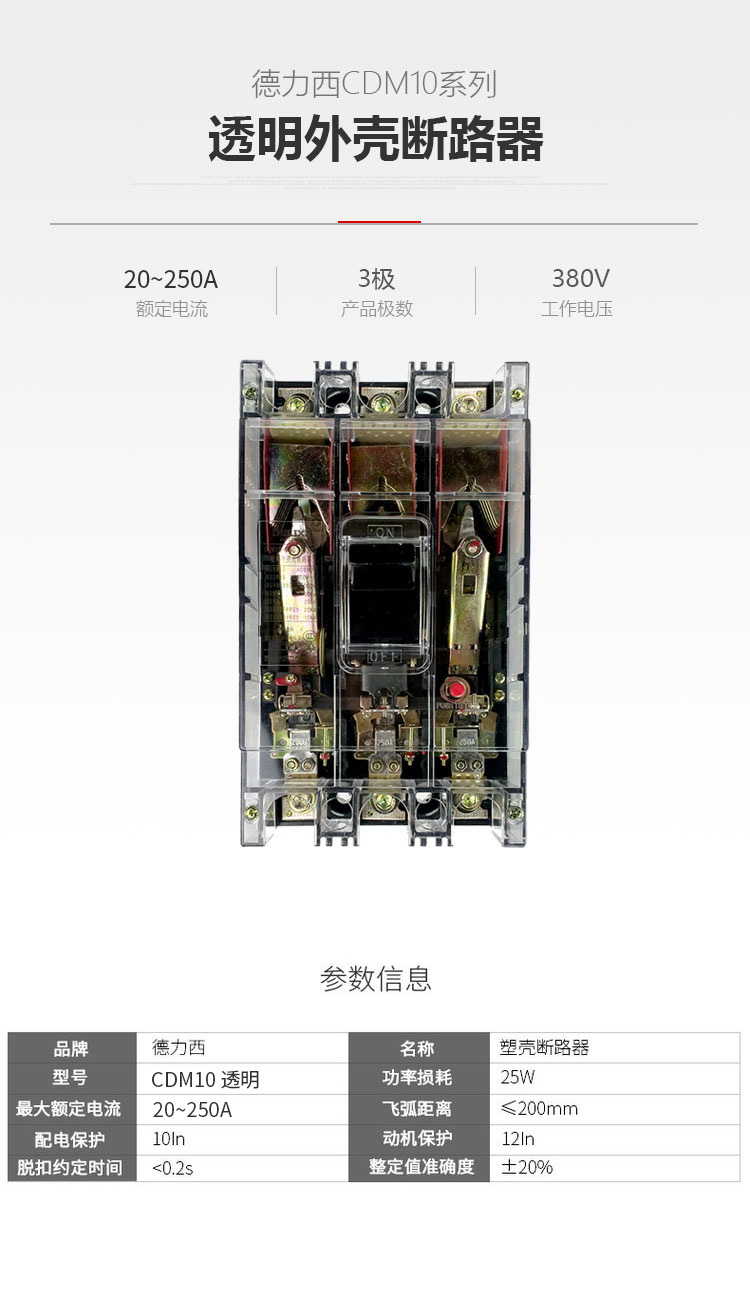 德力西CDM10-3極透明塑殼空氣開關(guān) CDM10塑殼斷路器透明型3300三相三極斷路器不帶零 |