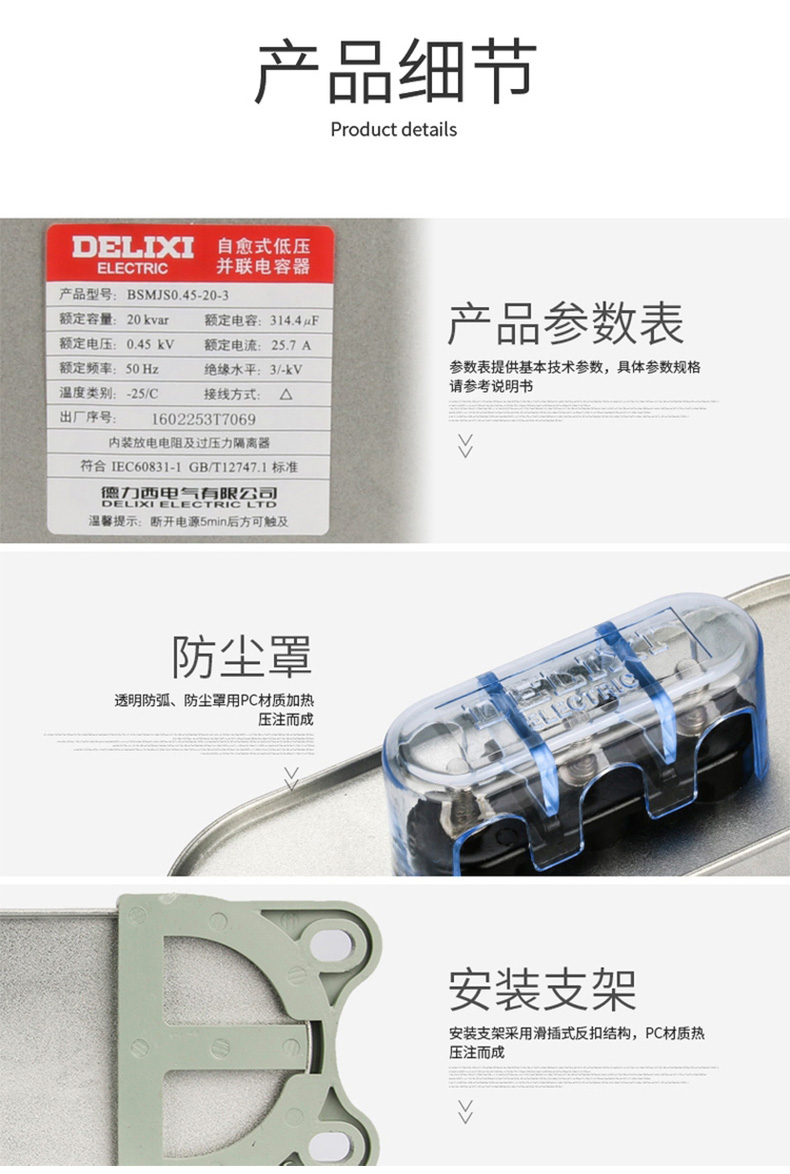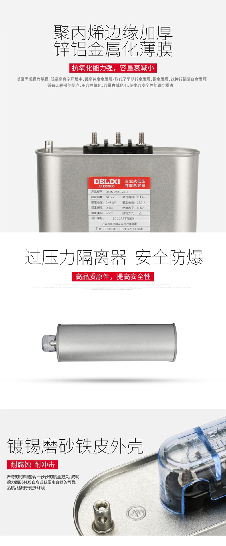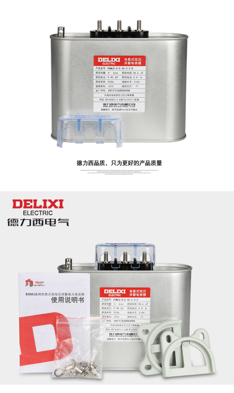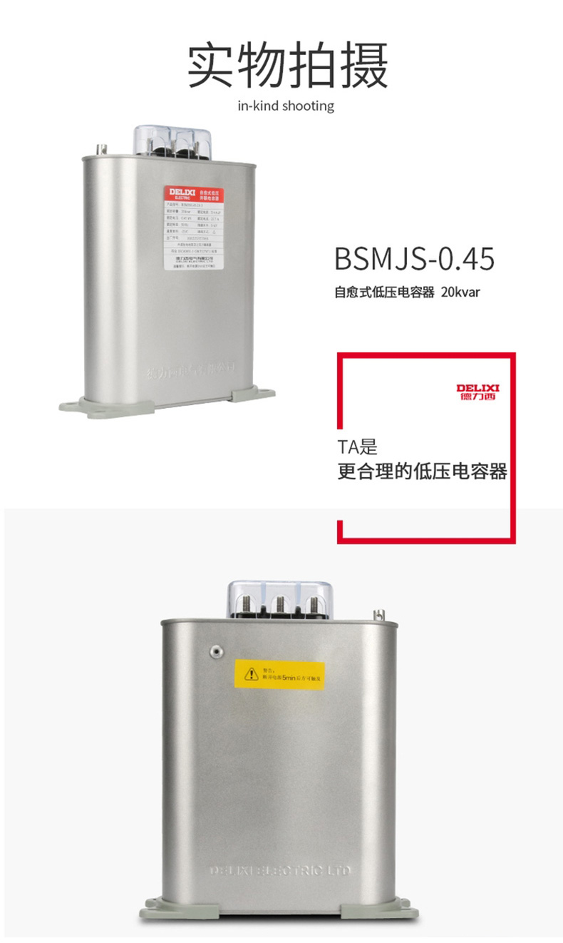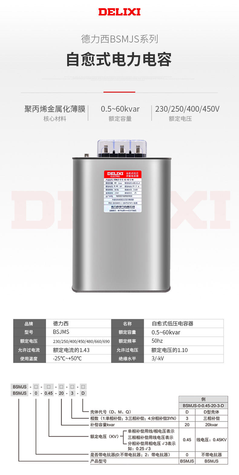 德力西電力電容 BSMJS0.45-18-3 德力西自愈式低壓并聯(lián)電力電容 18kvar 額定電流23A |