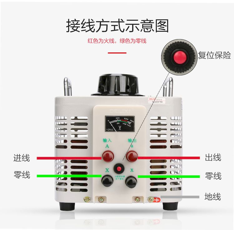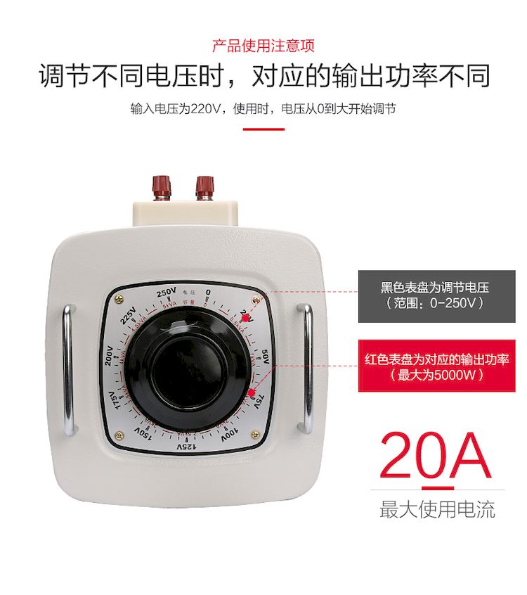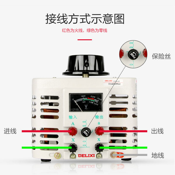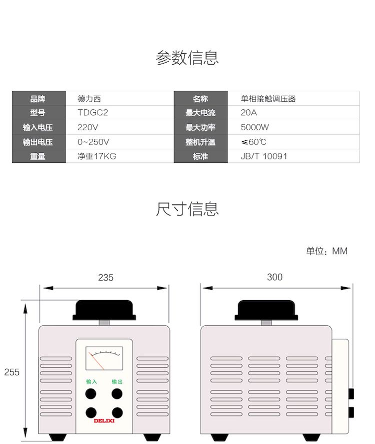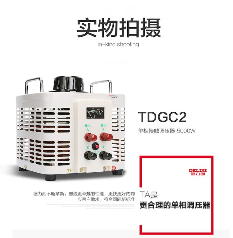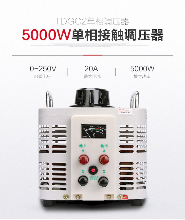 德力西單相調(diào)壓器 TDGC2-5KW/5KVA/5000W 輸入電壓220V 可調(diào)電壓0-250V 最大電流20A |