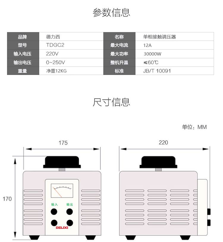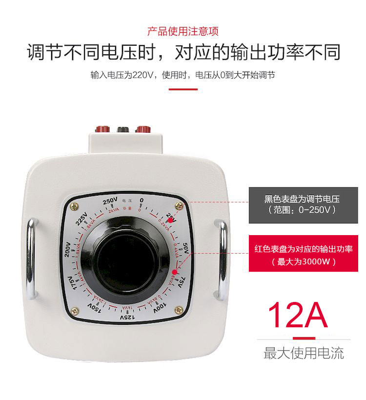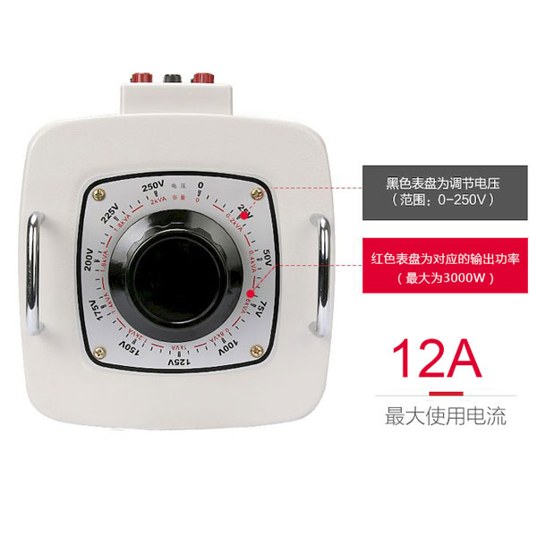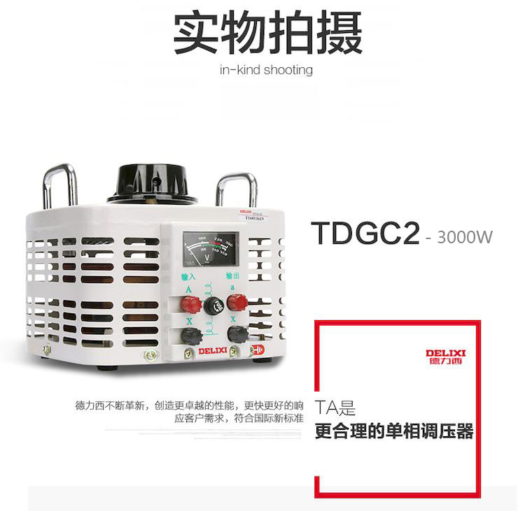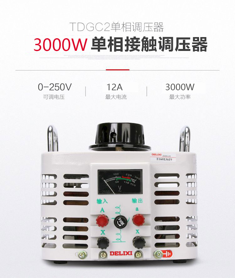 德力西單相調(diào)壓器 TDGC2-3KW/3KVA/3000W 輸入電壓220V 可調(diào)電壓0-250V 最大電流12A |