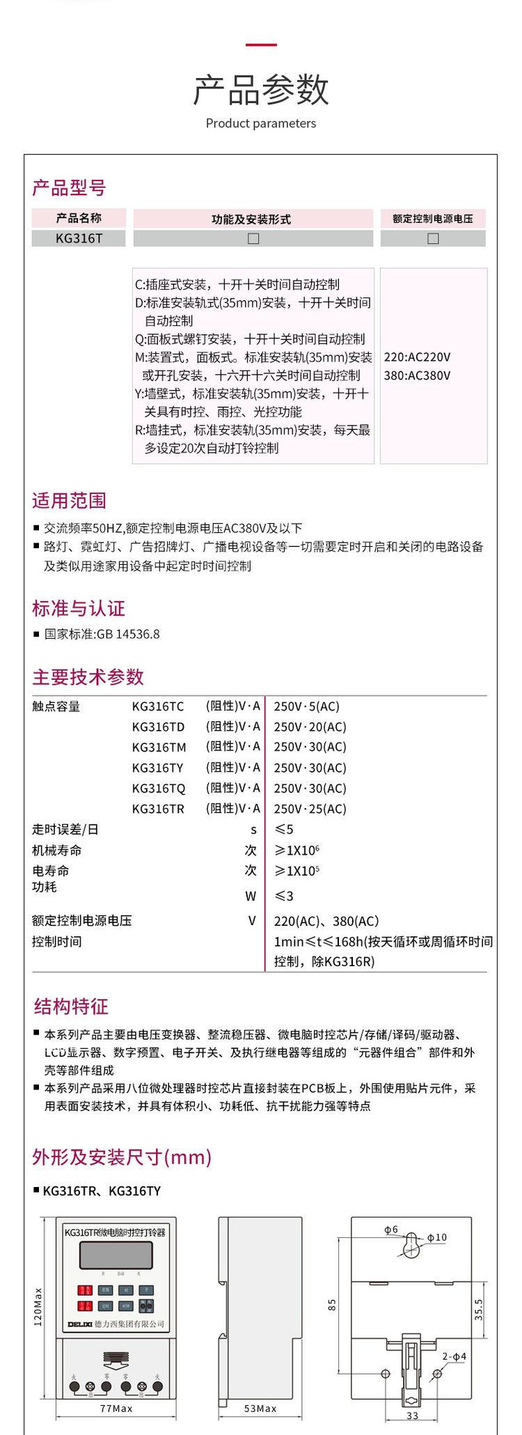 德力西時控開關(guān)KG316T產(chǎn)品選型手冊、技術(shù)參數(shù)及外形尺寸