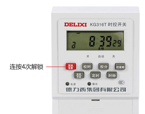 如圖所示,時控開關(guān)默認狀態(tài)下是鎖定狀態(tài),按任何按鍵是不起作用的,這個時候我們需要先解鎖。